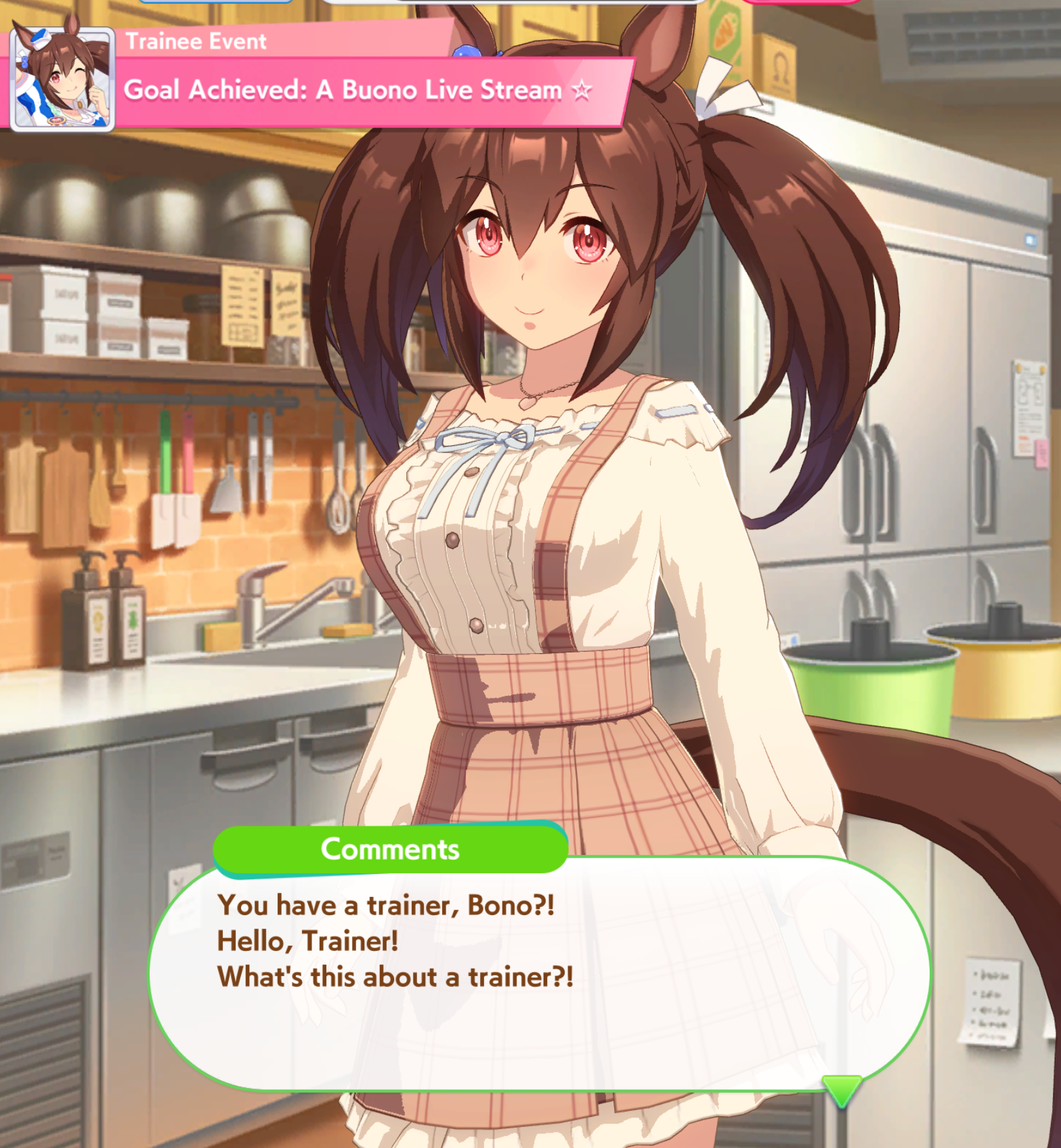 >>546202280what the fuck? Can you tell us what she generally thinks of the setting and uma designs?