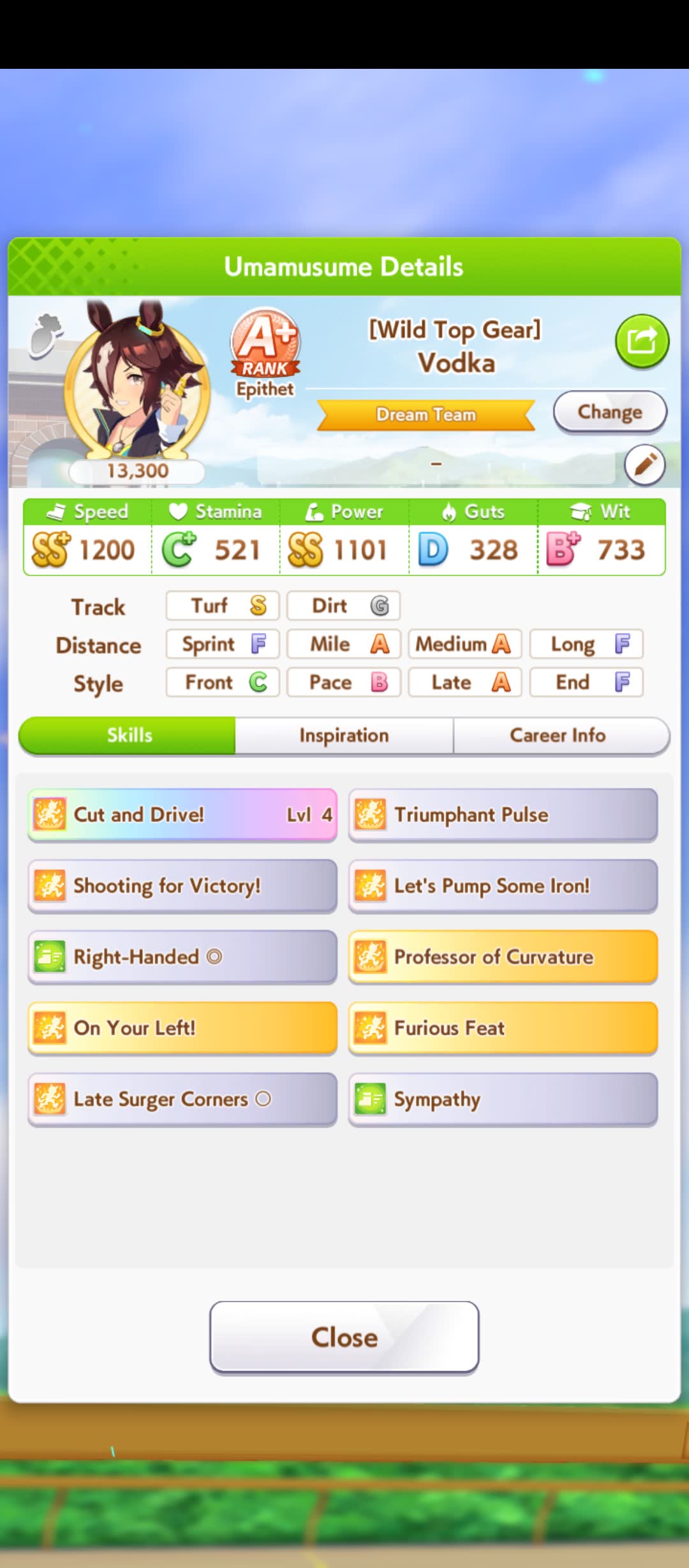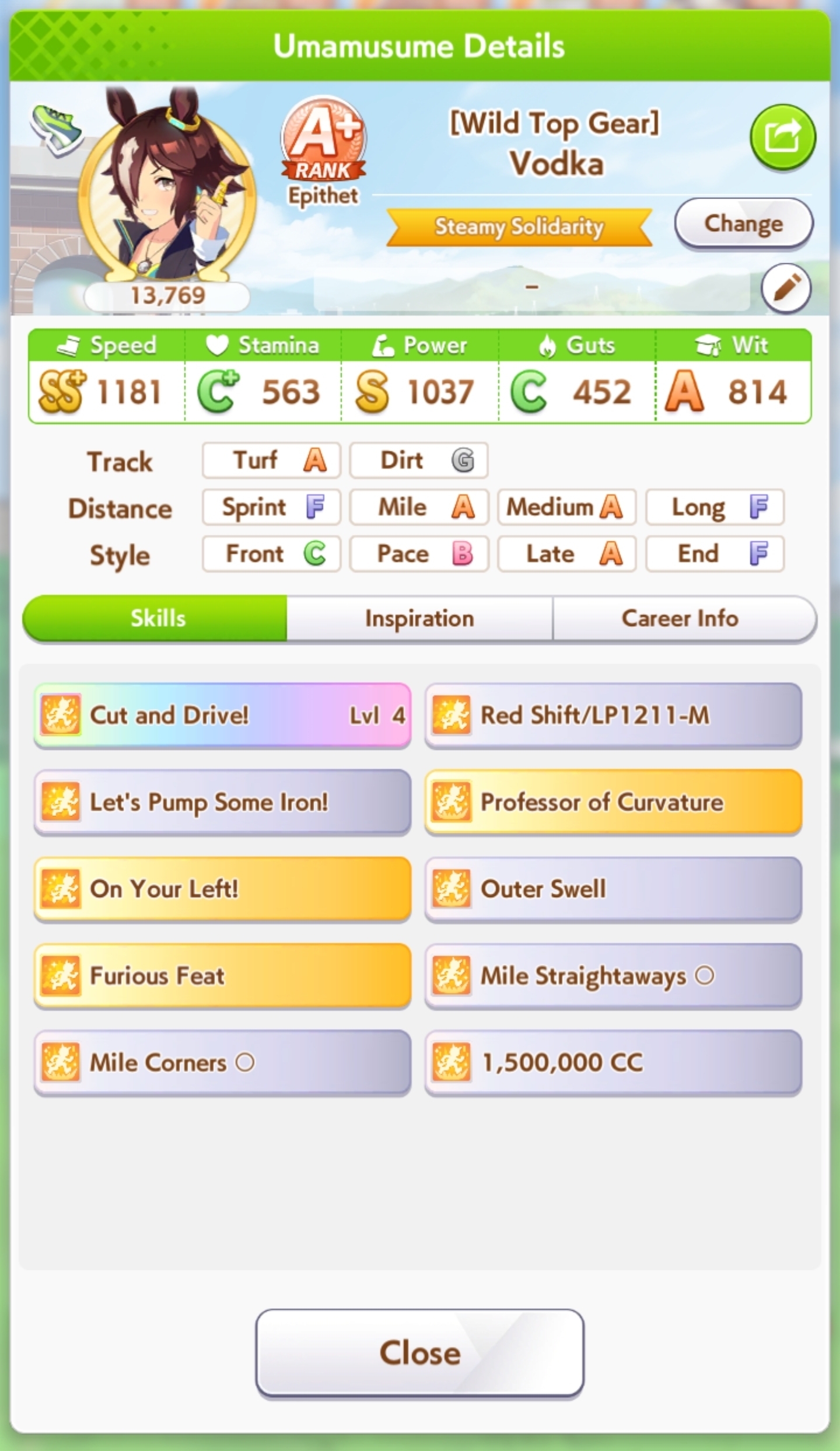 Is it me or do you not need Mile S for this CM? My 1150 Vodka A Mile Vodka keeps winning as long as her accels proc