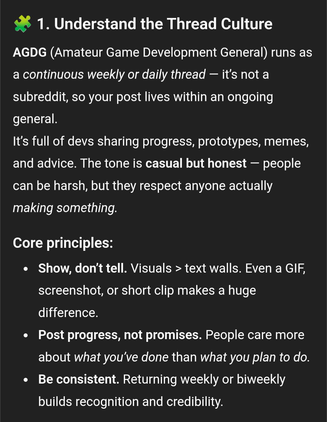 Around 100 arguments about AI happen on agdg alone EACH DAY.About 700 arguments in the week around your bait.AI webm? Low effort social media repost? BOOM thread's done.Also, not only are you having to deal with every retard that has no game, but the entire backlog of faggots who asked a chatbot to do something for them and it made something better than they could because they're unskilled retards :)Take all the "thread success stories" you can think of in the past 10 years and divide it by the number of AI obsessed faggots in agdg who post constantly about AI (again, 100 arguments a day, 3000 a month) and there's your historical likelihood of "having a good thread."Blackpills, 2 weeks, Grok is the closest thing they've had to a gf, AND to top it all off: None of the people who claim that AI is going to take over ever seem to have used it to make a game. If you successfully win this "mediocrity lottery" by baiting the thread into arguing about AI you'll have to so it all over again the next thread>He thinks that we can just have a thread about gamedev in 2025HahahahahaF A G G O TAGGOT
