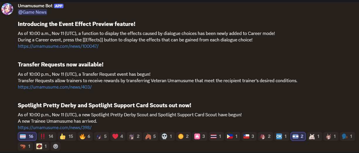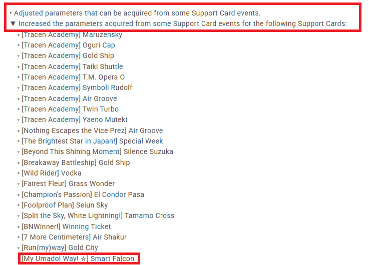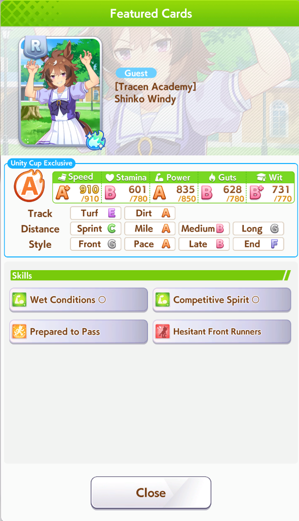Previous: >>546187131>Global Game NewsCurrent Scenario: Aoharu Hai aka "Unity Cup"Current Specials Missions: Half Anniversary Part 2+3Current Rate Up: Hishi Akebono (3*) Matikanefukukitaru (3* Alt), Biko Pegasus (SSR), Sakura Bakushin O (SSR), Riko Kashimoto (SSR), Rice Shower (SSR)11/11 - Balance Adjustments AKA Umamusume 2https://umamusume.com/news/100040/https://pages.snep.pw/uma/anni-skill-changes/11/13 - Legend Races11/16 - VIRGO CUP - Hanshin 1600m11/24 - Story event>JP Game NewsCurrent Rate Up: Wonder Acute alt (3*), SSR Mihono Bourbon (Power)New Scenario "Yukoma Hot Spring" releasedTimeline: https://uma.moe/timeline>IP NewsUmamusume Cinderella Gray 2nd season started weekly airings on 10/5>Thread Clubshttps://rentry.co/umaglobalclublistYou must be E3 (20k points) to join a circle. Apply with /uma/ or /vg/ in your profile or post ID in the thread.>All Guides & Resourceshttps://rentry.org/uma26Game databasehttps://gametora.com/umamusume (Click the gear to switch between JP / global server info)A basic guide for newfagshttps://rentry.org/umaglobalFind networks if your region is blocked from the game or clienthttps://www.umavpn.top/93Seiyuu & Concertshttps://rentry.org/umst/uma/ POG (Paper Owner)