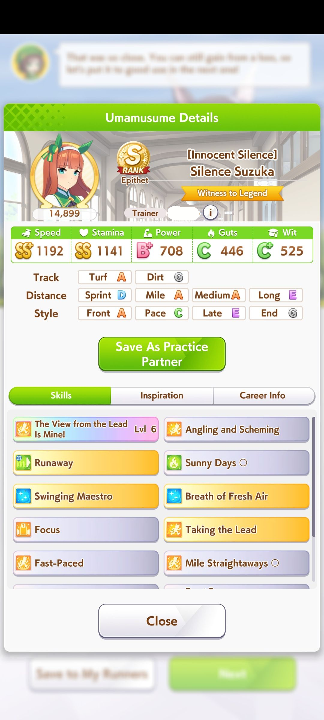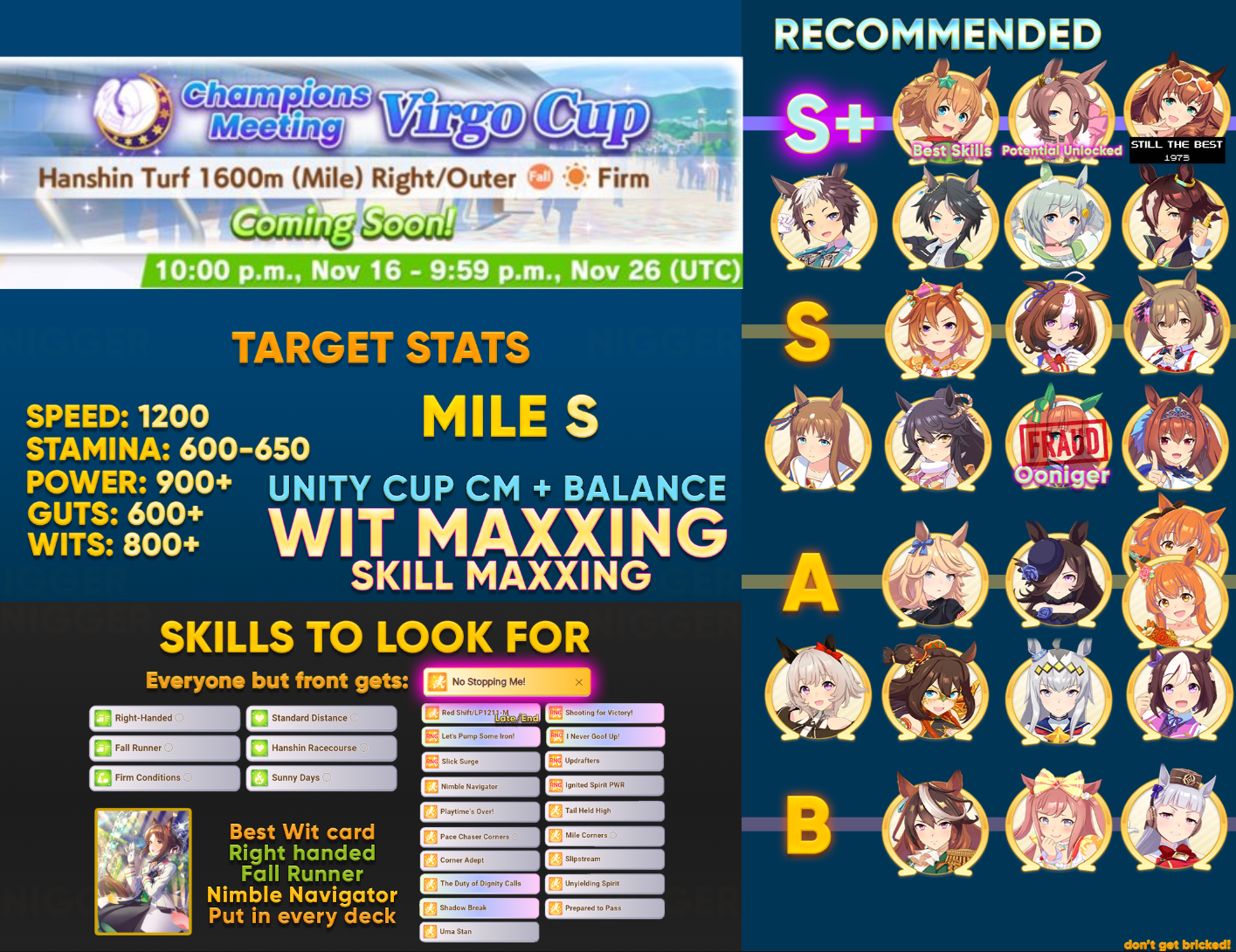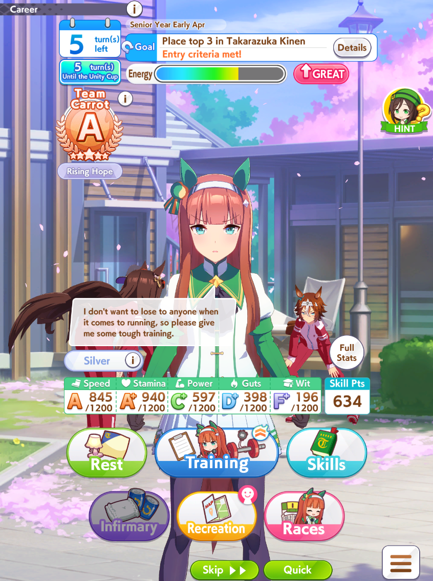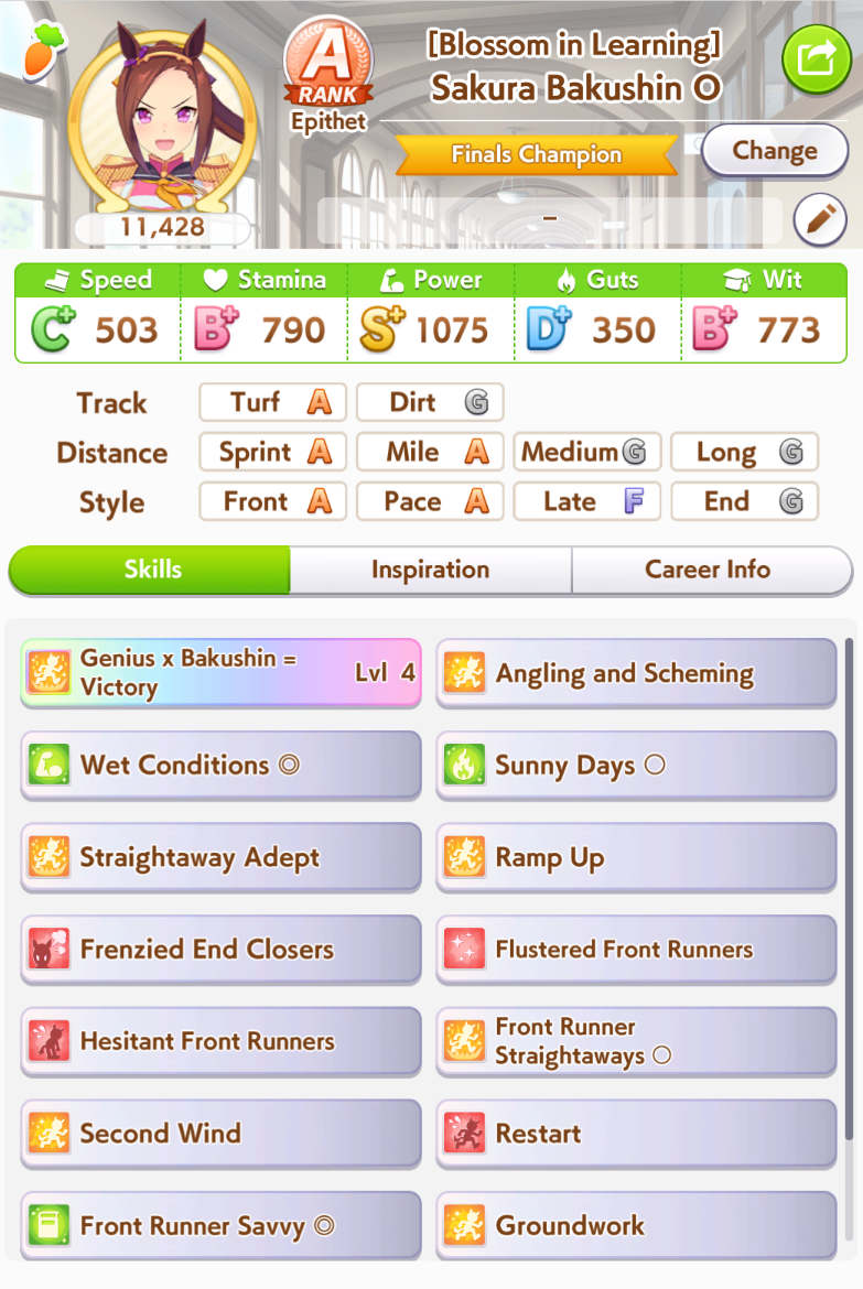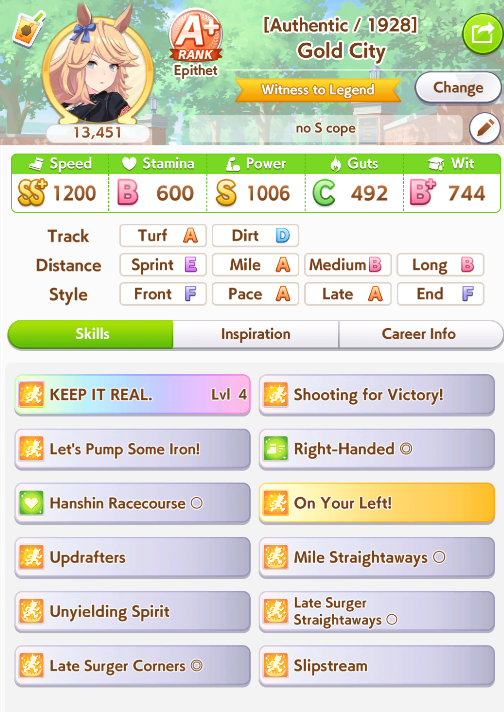 >>546217545Respectfully, I'm used to minmaxxing for Open League. I'm an A rank because I do optional races and know 20 fucking skills