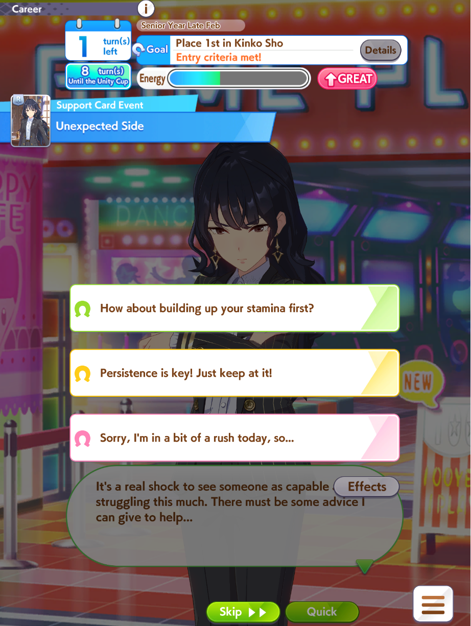 >"yeah bro we totally adjusted careers to be better">mood down events back to back>mood down events right before races>no point in energy raising now that it's "balanced"