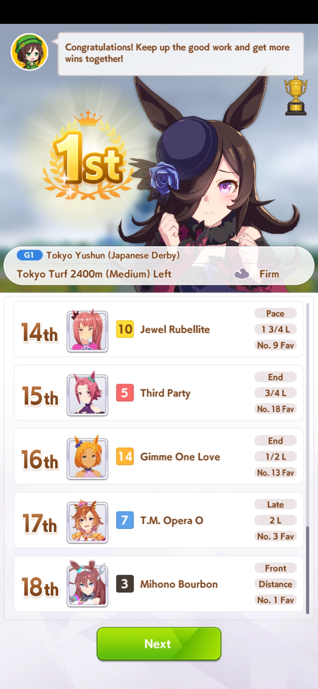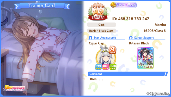 Previous: >>546203072>Global Game NewsCurrent Scenario: Aoharu Hai aka "Unity Cup"Current Specials Missions: Half Anniversary Part 2+3Current Rate Up: Hishi Akebono (3*) Matikanefukukitaru (3* Alt), Biko Pegasus (SSR), Sakura Bakushin O (SSR), Riko Kashimoto (SSR), Rice Shower (SSR)11/11 - Balance Adjustments AKA Umamusume 2https://umamusume.com/news/100040/https://pages.snep.pw/uma/anni-skill-changes/11/13 - Legend Races11/16 - VIRGO CUP - Hanshin 1600m11/24 - Story event>JP Game NewsCurrent Rate Up: Wonder Acute alt (3*), SSR Mihono Bourbon (Power)New Scenario "Yukoma Hot Spring" releasedTimeline: https://uma.moe/timeline>IP NewsUmamusume Cinderella Gray 2nd season started weekly airings on 10/5>Thread Clubshttps://rentry.co/umaglobalclublistYou must be E3 (20k points) to join a circle. Apply with /uma/ or /vg/ in your profile or post ID in the thread.>All Guides & Resourceshttps://rentry.org/uma26Game databasehttps://gametora.com/umamusume (Click the gear to switch between JP / global server info)A basic guide for newfagshttps://rentry.org/umaglobalFind networks if your region is blocked from the game or clienthttps://www.umavpn.top/93Seiyuu & Concertshttps://rentry.org/umst/uma/ POG (Paper Owner)