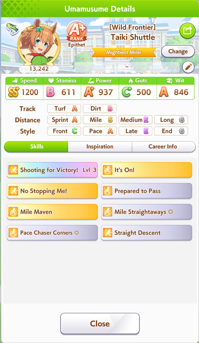 So who do I build for FR this CM?Is S.Maru still the best? I need 350K to get Mile Maven and I will out of monies to get Vodka's Furious Feat.