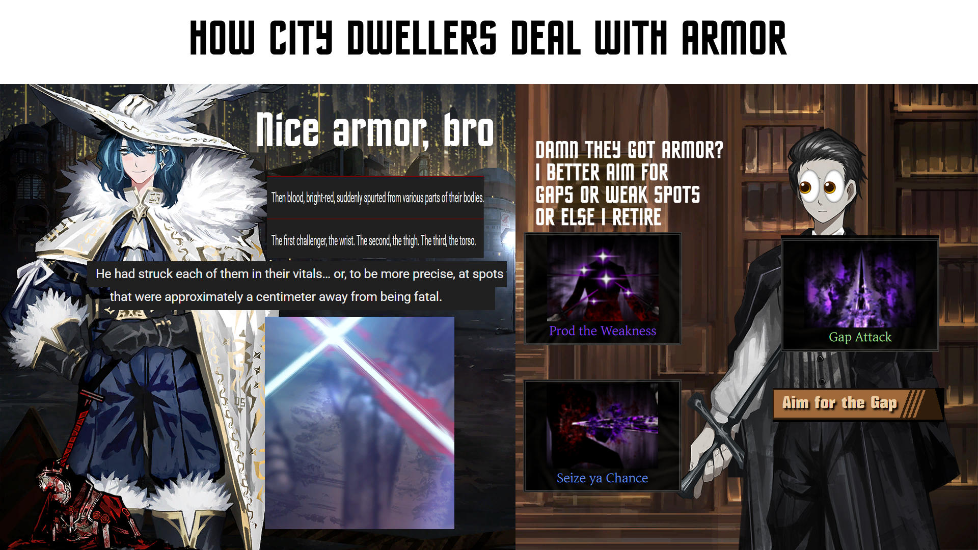>>546221902>our story is getting boring>suddenly RAAAAAH MAGICAL SPIRIT SWORDS>>546222069>our very coherent story is getting boring>RAAAAAH THIS WAIFUBAIT IS ACTUALLY SECRET AGENT FROM ANOTHER TIMELINEBoth weebslop.