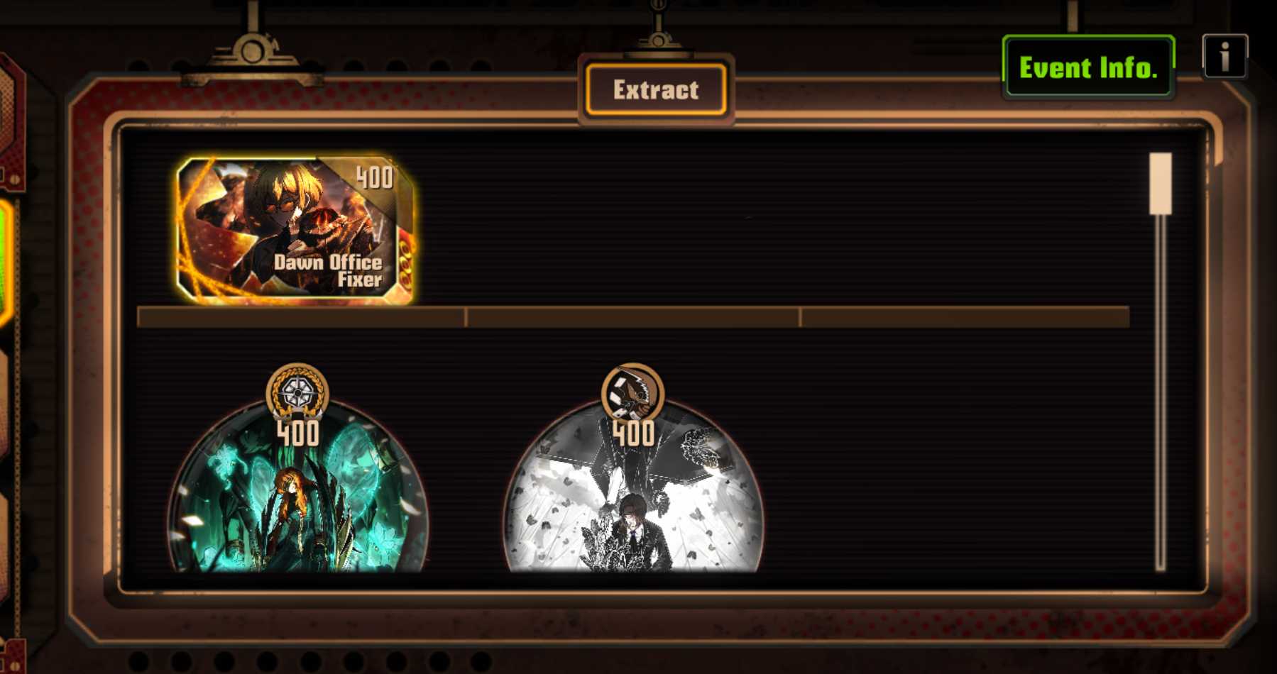 Previous thread: >>546175284Season 6 - 葬花吟 [Zàng Huā Yín]2025.05.15 —Mirror Dungeon #6 - Mirror of Immortality2025.07.03 —Refraction Railway Line 5 - Merry Go Round2025.02.20 —>Current Events2025.11.06 — 2025.11.20The 7th Walpurgisnacht - A Certain Library's General Invitation2025.10.23 — 2025.11.20Chapter 6.5 Murder on the WARP Express BokGak>Current Extractions>The 7th Walpurgis Night Target Extraction2025.11.06 — 2025.11.20[000] Night Awls Capitano Gregor[000] Jeong's Office Rep Ishmael2025.11.06 — 2025.11.20Target Extraction: [ The 2nd & 3rd Walprugis Night ] ID & E.G.O>FAQs! This game is directly tied to the setting of Project Moon's previous games, Lobotomy Corporation and Library of Ruina, and is set after both. Expect spoilers for those games in this thread.! The tutorial is important.>Download linksAppStore: https://apps.apple.com/app/limbus-company/id6444112366Google Play: https://play.google.com/store/apps/details?id=com.ProjectMoon.LimbusCompanySteam: https://store.steampowered.com/app/1973530/Limbus_Company/>Other linksOfficial twitter: https://twitter.com/limbuscompany_bOfficial youtube: https://www.youtube.com/@ProjectMoonOfficialOfficial site: https://limbuscompany.global>Required readinghttps://mega.nz/folder/xosDkZ5Z#Wt4JpUt5Bb2XG77pxuuXpw>For all your EGO and Sinner info needshttps://limbus.kusoge.xyz/https://gll-fun.com/en/>Useful resources and a general guidehttps://rentry.org/lcg_resourceshttps://rentry.org/lcbguidehttps://rentry.org/LCB_optimal_grind_guidehttps://lcb-days-since-last-id.carrd.co/https://lcb-days-since-last-ego.carrd.co/>Countdownhttps://lcbcountdown.carrd.co/