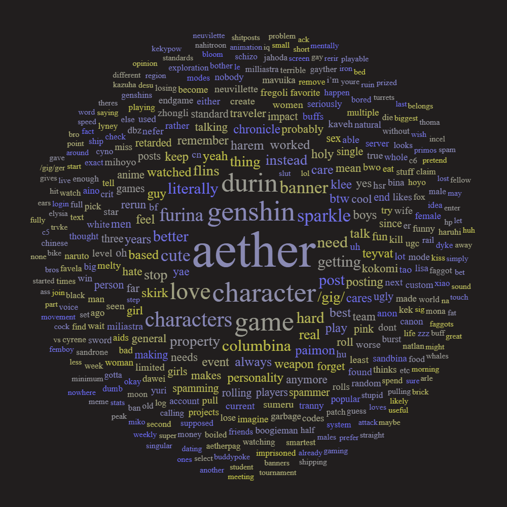 Yep worst posters on /gig/ indeed>Anti-Aether schizos>Anti-Clorinde schizos>Yuri schizos>dbz schizos>honkai schizos