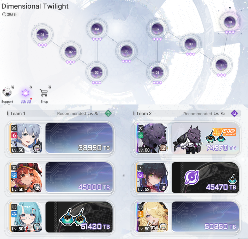 This cycle is easy.Yuki is not mandatory despite the +50% inspiration buff.Floor 9 is a bit tricky, but floor 10 is straightforward.Good luck with your Dimensional Twilight, anons.