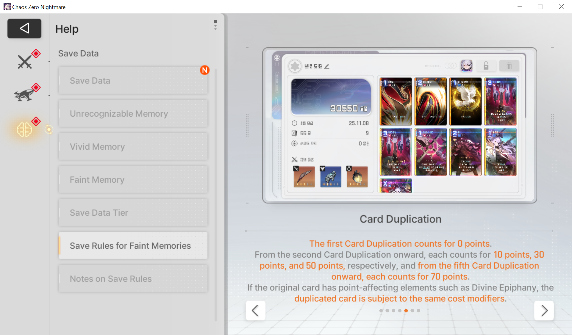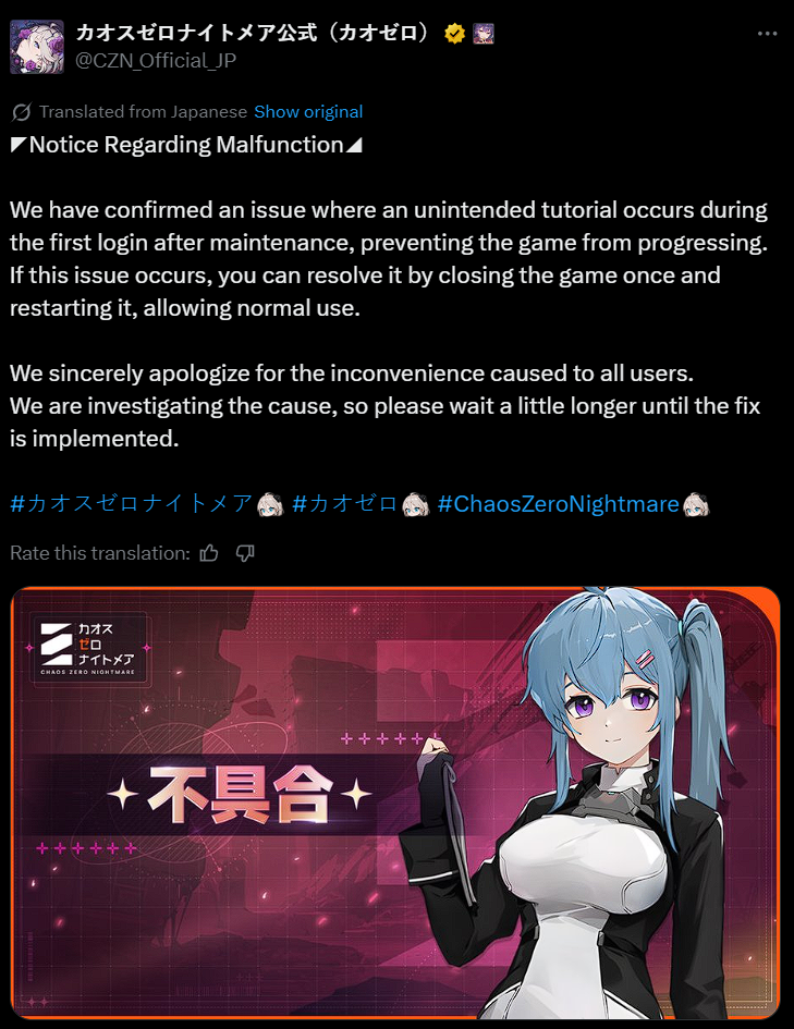 The nightmare is ongoing... >>546229575>"Forbidden Catalyst" Update is OUT!https://www.youtube.com/watch?v=qkkV_Cb7h2shttps://www.youtube.com/watch?v=BYR6GAxNBHYhttps://www.youtube.com/watch?v=EpxVII71swoDeveloper Note: Upcoming Improvements in the First Update: https://sdk-page.onstove.com/chaoszeronightmare/en/view/11209203>Yuki showcaseEN: https://www.youtube.com/watch?v=giHC7WWGv70JP: https://www.youtube.com/watch?v=ZM9IQK2fnaU>Current Featured Banner/Upcoming BannerYuki - Striker - Order - Until December 3rd>Current Events/Upcoming ContentGalactic Disaster - Forbidden Catalysts - Season 1 | Until January 13th 2026Guardian of the Ark - Policy Event - Until December 3rdGalactic Disaster Dispatch - Login Event - Until November 25th>Wikihttps://wiki.e7bot.top/#/czn/combatant>Basic Guides and Introductionhttps://www.youtube.com/watch?v=B-0CaRtTTpQhttps://www.youtube.com/watch?v=zDFkvOXO2Jg>Deck building simulatorhttps://czndecks.com/>PC Client (Stove)https://www.onstove.com/en/download>Reroll guidehttps://game8.co/games/Chaos-Zero-Nightmare/archives/559640>Why didn't my Save Data save properly?Save Data uses a points based system. If you go above a certain threshold, your Save Data will be edited.Source: in-game guidehttps://rentry.co/cznsavedata