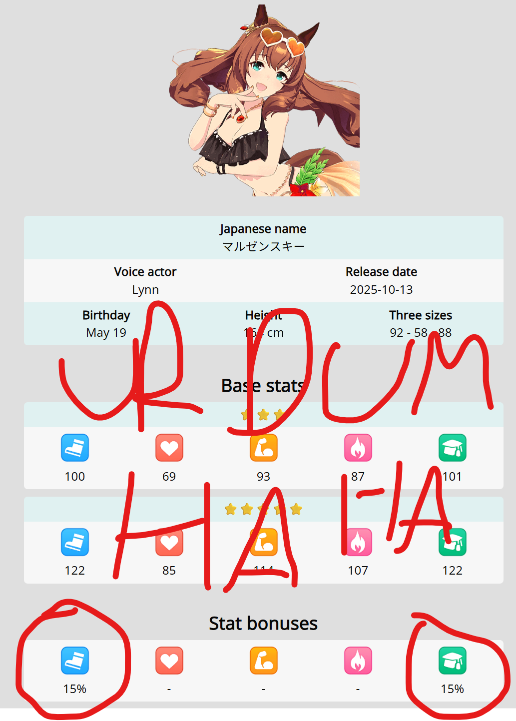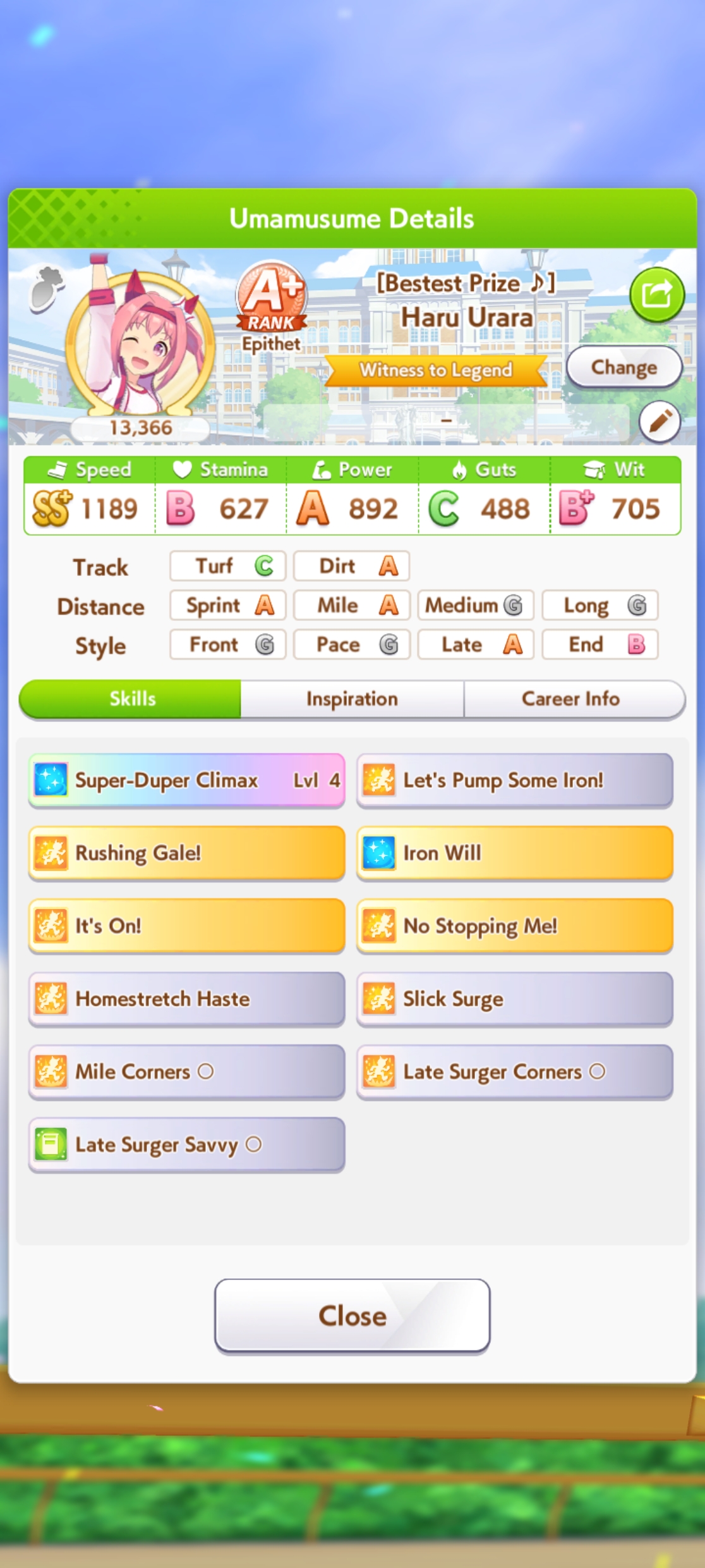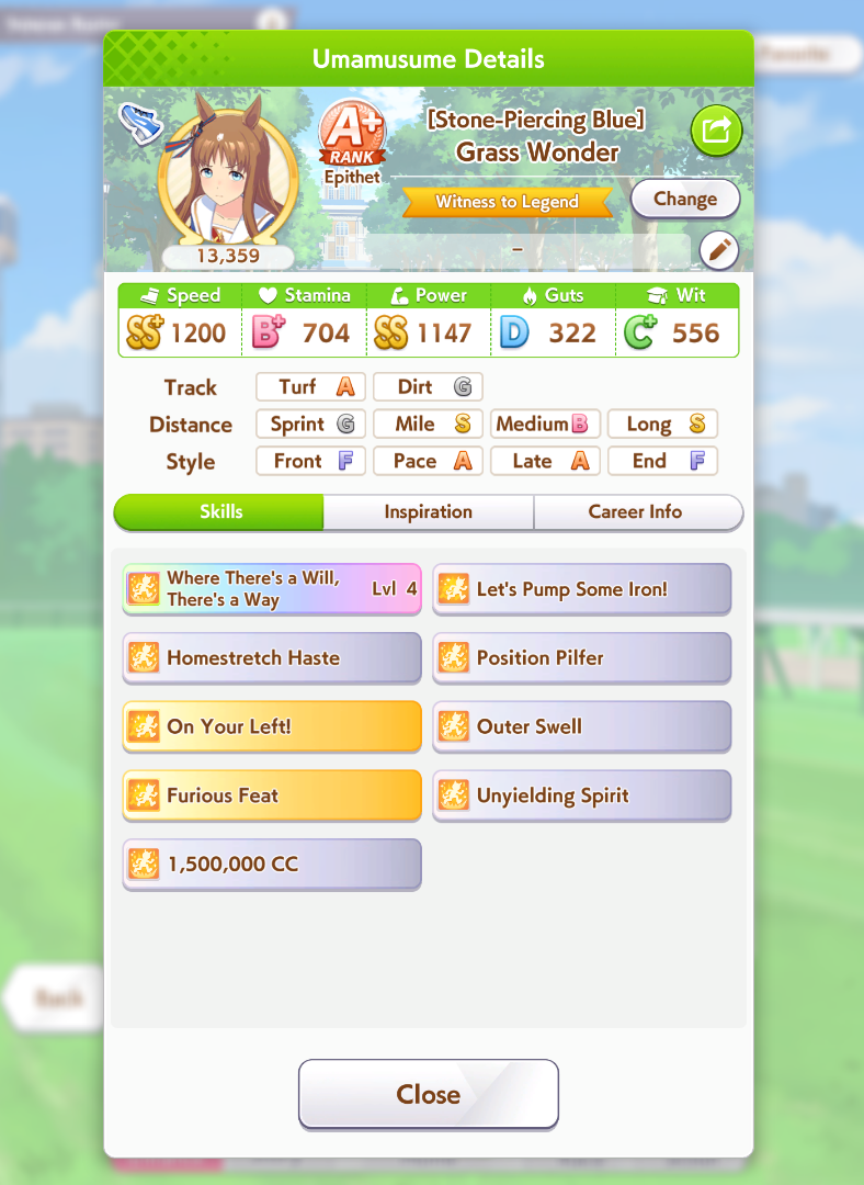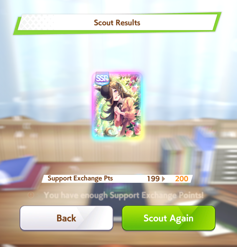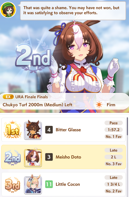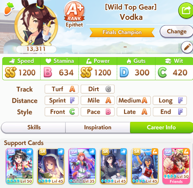 My TT team will get strong and I will still have a shitter B+ Urara on it. Give me another dirt horse game