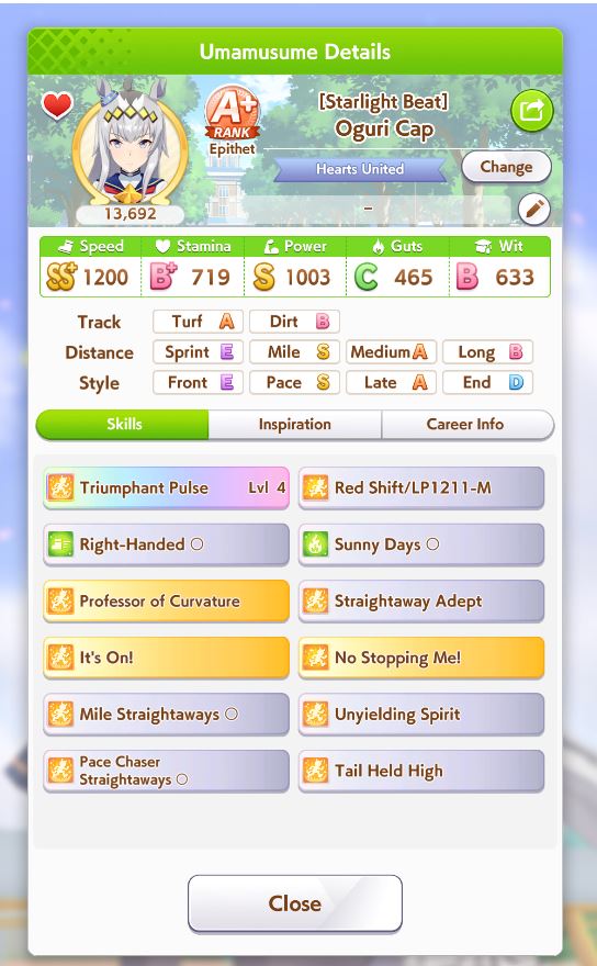 >>546293509wouldnt be that bad to atleast inherit ryans unique on taiki if there are 3-4 fronts hogging positions meaning you have a better chance of being 6th as a pacer, other than that maybe oguris just to have a bit of a boost for the near end