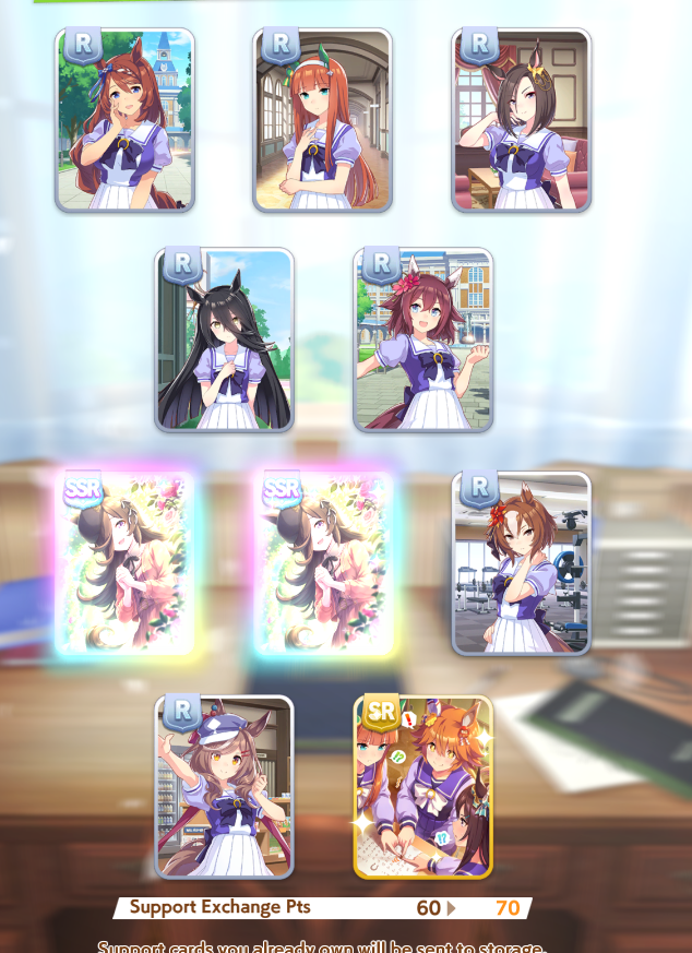 Is it just me or is it no longer possible to be super surprised from a stealth 3* or SSR? I thought everything was made to look like a normal 10 pull with no rainbow hologram on the support card book cover or no ornamentation on the door (plus just Tazuna showing up) for the uma pull, but then the rainbow tab or gate will show up as the animations play out But now even if you initially see no rainbow tabs or rainbow gates, you will still see a hint from the rainbow book cover and ornamented door