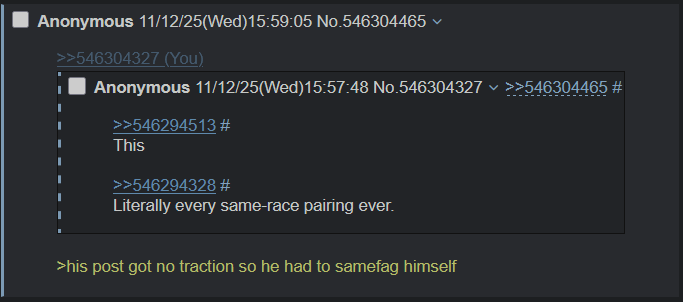 >>546294797>>546295390Do you get off on people not liking you?