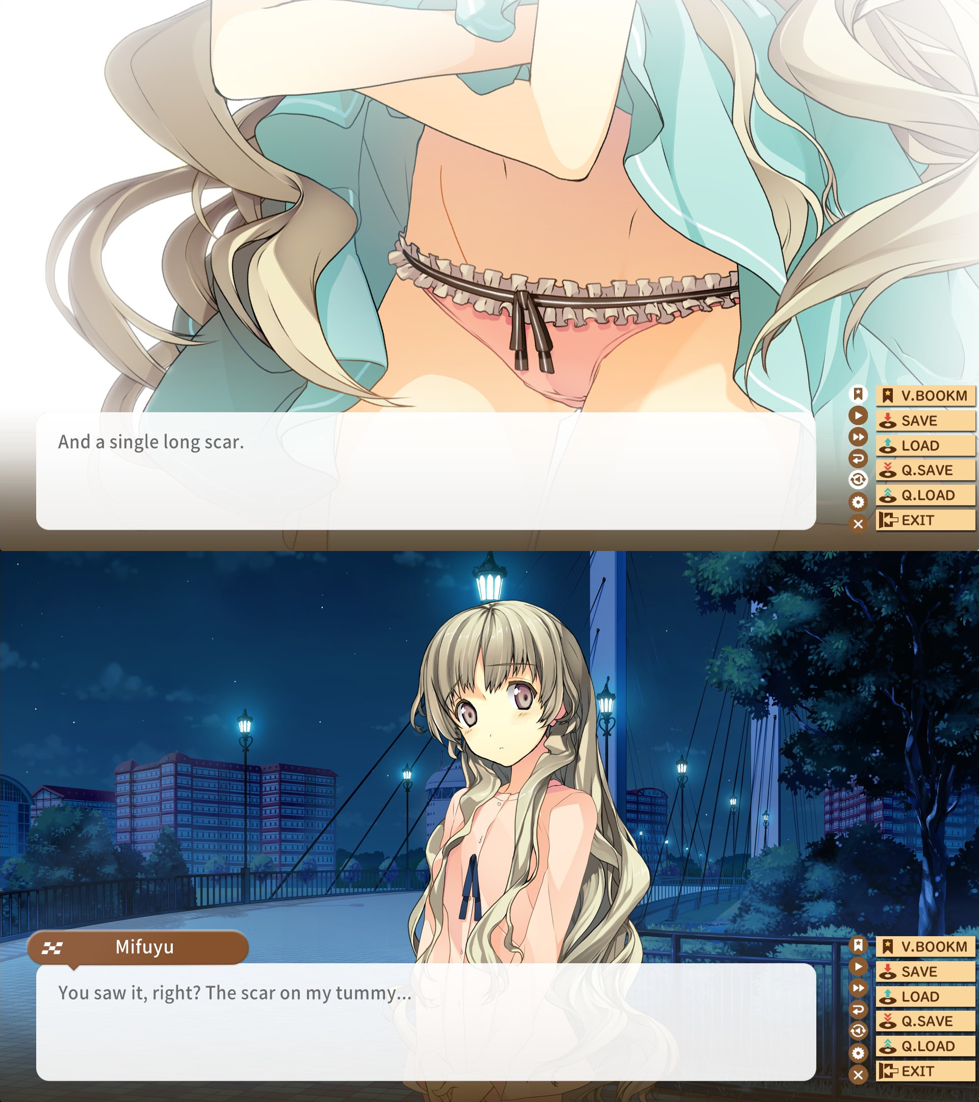 I think this is enough for the blogpostation of it @_@ hmmm... when I was younger I always thought this type of ge is what "moege" was... and that is why I used to have a high opinion about this industry... the moege industry... but now I realize... to get a ge like this one? you need to search among thousands of trash from the likes of Yuzusoft and other sheeeit companies...This ge will win my heart... this writing? Very intriguing and fun to read... the TL? Not bad at all... music and art? They are fine... yep... am reading this ge T-T don't think I'll blogpost it anymore... I don't like to NTR anyone while doing it... so I will read them alone... hmmmm... hope I can finish it by next year? Am going to focus on all-ages and only read them when I feel too weak to blogpost...