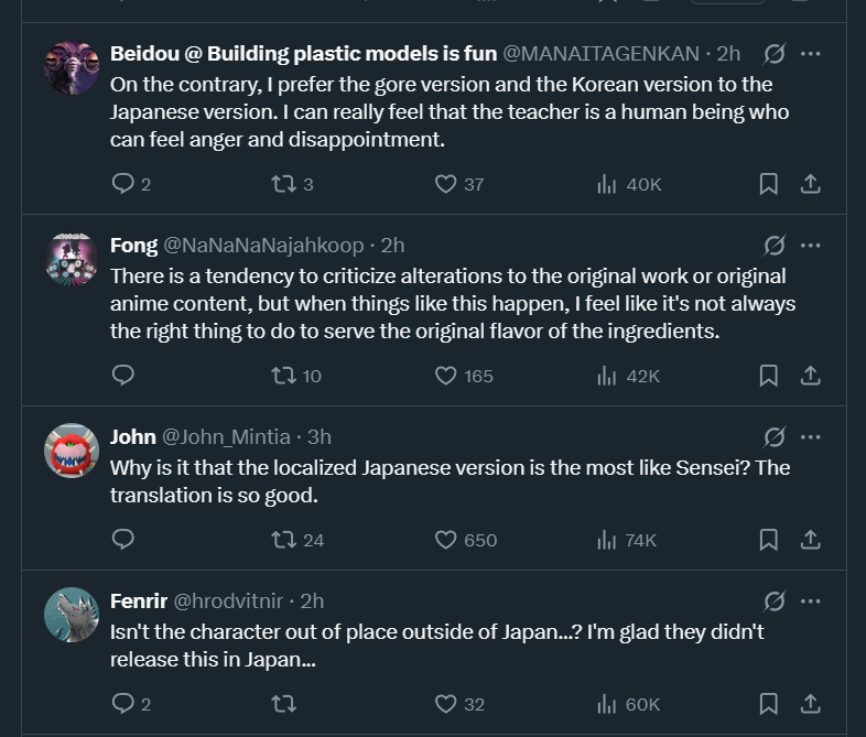 fwiw the japanese seem to on the whole prefer Sensei being less meanI think that's gay but also it's very japanese. Pic related is translated from top replies to the original post (all 3 japanese). See for yourself https://x.com/himago000/status/1988758599825596704