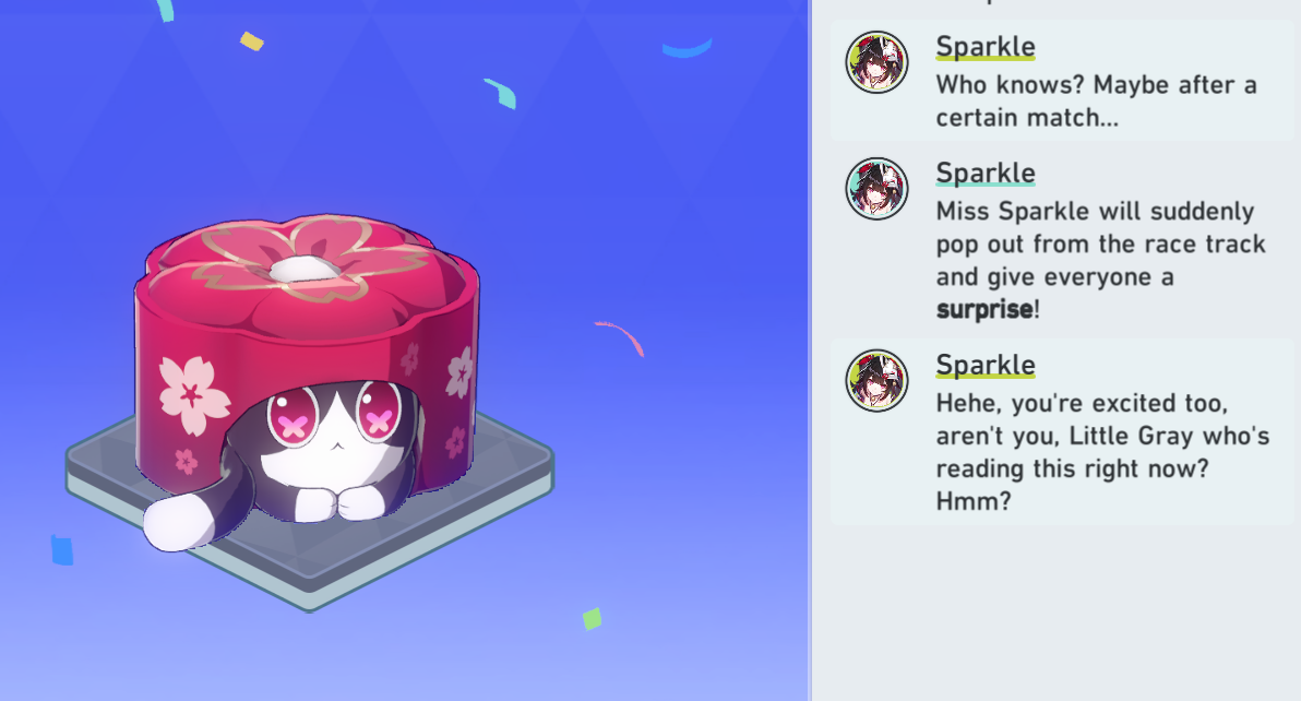 Sparkle is the property of Caelus. She's obsessed with Caelus, just like every other female in the whole entire game is. This is based.