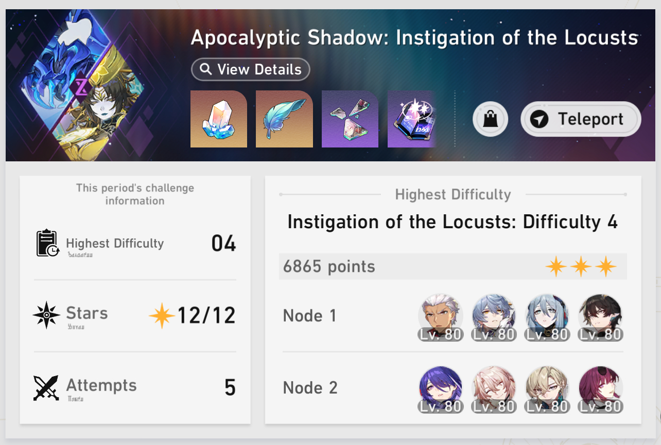 >>546368989Get Phainon 3 thorn armors. That's it. Get him into the ult state fast and he reflects 99% of the damage done to him. It's very good in high level because the enemies there are fucking fast.For teammates get maybe 3 other shielders or his usual teammates. Honestly just as long as he gets to ult immediately.