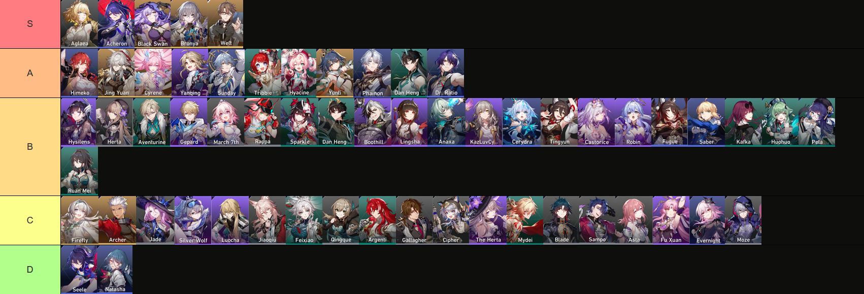 Currency War Character Tier List.Characters are not in order in their own tier.Except for Aglaea and Acheron. Those two are tippy-top.