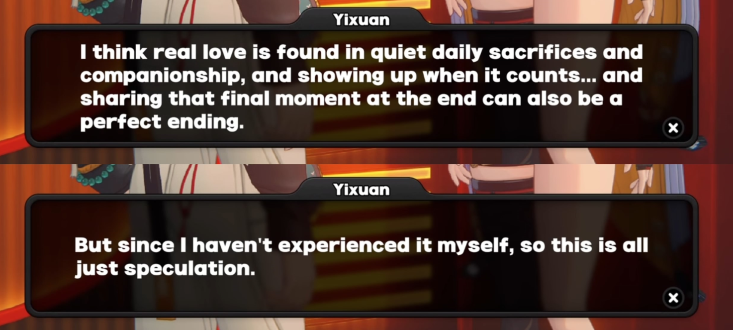 >>546467701More small stories and less Ching Chong Temple and it's inhabitants. After Season 2 I literally never want to see Yi Xuan again ever in the story for any reason.Also mandatory Piper outfit every major banner release.