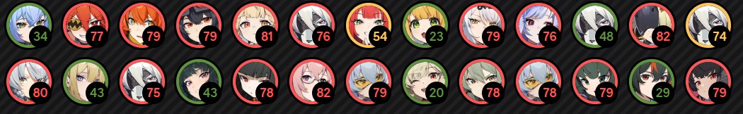 >>546447991In order:> Orphie, Yuzuha, Lucia, Yanagi, Anby (Stunner)> Nicole, Ellen, Vivian, Caesar, Nekomata> Yidhari, Pulchra, Jane, Eve, Panda> Seed, Alice, Manato, Yutane, Chinatsu> S-Anby, Yi Xuan, Ju Fufu, Hugo, Rokudo> Astra, Piper, Miyabi, Seth, Zhu> Qingyi, Rina, Billy, Harumasa, Grace> Burnice, Lighter, Lucy, Corin, Soukaku,> S11, Lycaon, Ben, Anton, Koleda NTA, but how did I do?