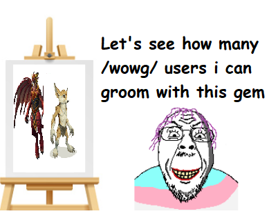 >>546476891Genuinely speaking, if modern Blizzard suddenly decided that they wanted to have Native American representation in the game, they would completely forego writing for the Tauren, and instead create a brand new variation of humans in order to fulfill this. The writers are all women, and thus are incapable of understanding what goes into writing fantasy. >>546477038No they aren't. Blizzard kowtows to Alliance spergs every single time (Just look at how quickly they bent over backwards over the whole Silvermoon shit), so unless the raid consisted of retaking Stormwind from an onslaught of demons, this would literally never happen, ever. All of the writers are extremely, heavily biased in favor of the Alliance, and they'd kill off another Horde leader than so much as even think of touching an Alliance leader.