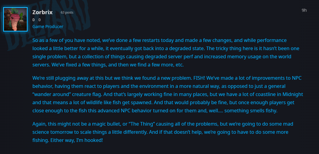 https://www.wowhead.com/news/new-fish-behavior-may-be-the-source-of-the-midnight-beta-lag-379265>change how mobs patrol around slightly>all mobs in water now lag the entire server