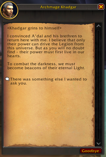 >>546522213Objectively false. You still get called as part of a groupIt's in Draenor that you truly become the main character because of how the story plays out and how everyone calls you the commander and the garrison and how almost every quest and mission are soloable etc etc