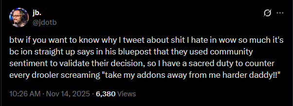 https://x.com/jdotb/status/1989373538097340687He's in permanent chimpout mode