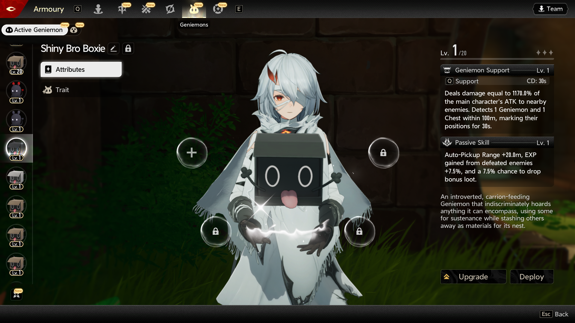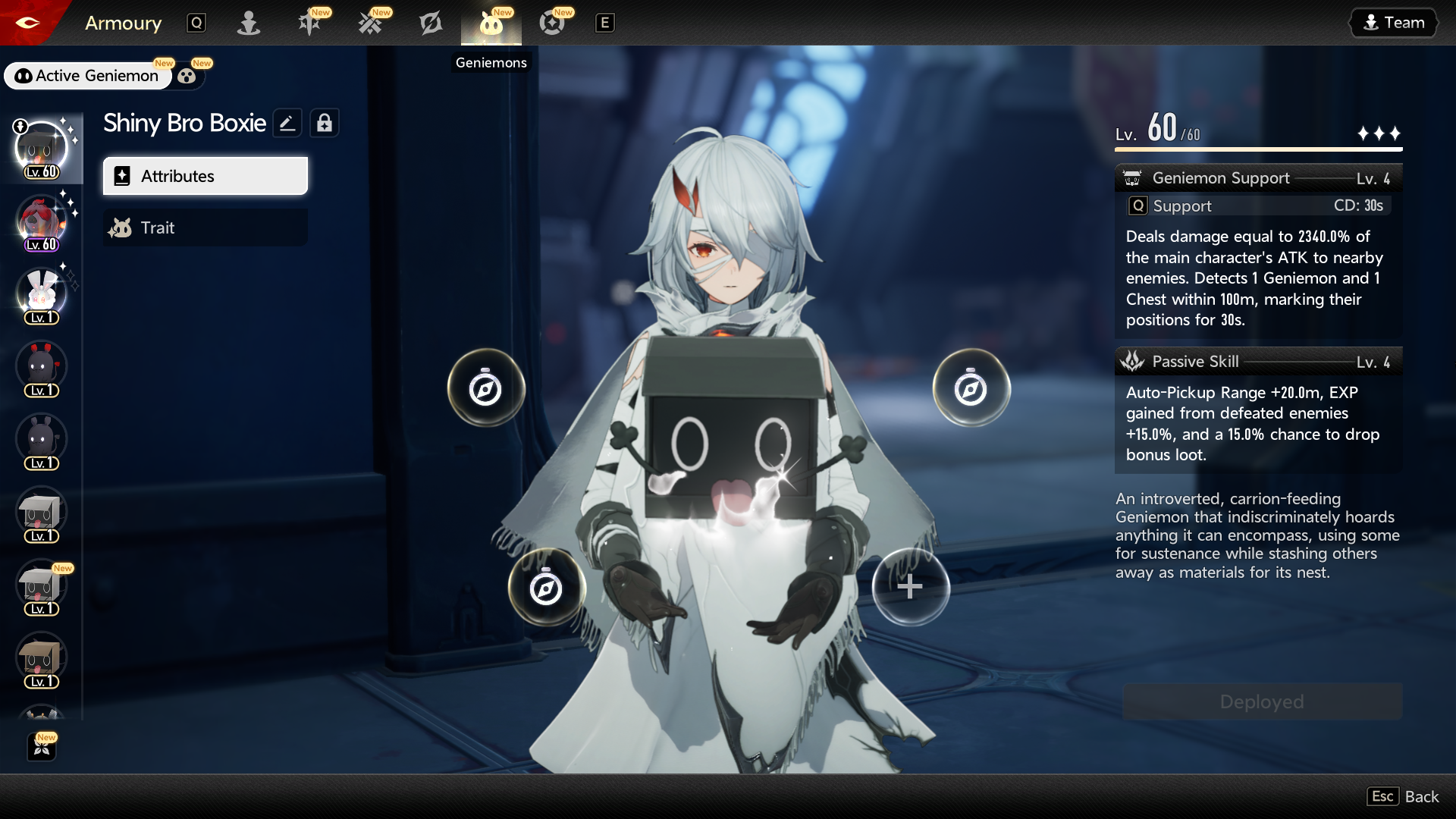 >>546504320Auto-fishing goes on Boxie Bro because I don't want to have to fucking switch my geniemon every time I do fishing, retard. Boxie Bro stays on the default loadout because that's the one that does the open world shit.