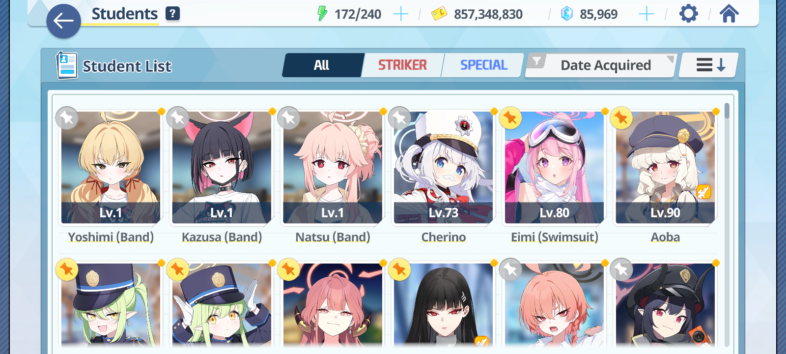 I own too many of them. I limit myself to highly aesthetically pleasing plushies + students I super love. Also if I think "you need your other girls around you" I got those too. So I've got