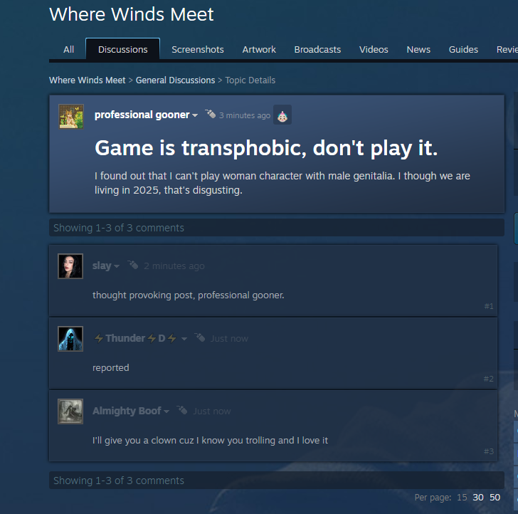 Previous thread: NaNFirst bake worst bake edish, feel free to add links, info or edit the OP. /wwmg/ is also just a placeholder.Where Winds Meet is an epic Wuxia open-world action-adventure RPG set in ancient China at the tenth century. Players will assume the role of a young sword master as they embark on a journey to uncover the mysteries of their own identity. Let the wind carry your legend on an epic journey to the East!Website: https://www.wherewindsmeetgame.com/Pre-download Now:PS Store: https://playstation.com/games/where-winds-meet/Steam: https://store.steampowered.com/app/3564740/Where_Winds_Meet/Official PC Launcher: https://wherewindsmeetgame.com/news/official/GlobalLaunch/InstallGuide.htmlGlobal launch in ~3 hours!