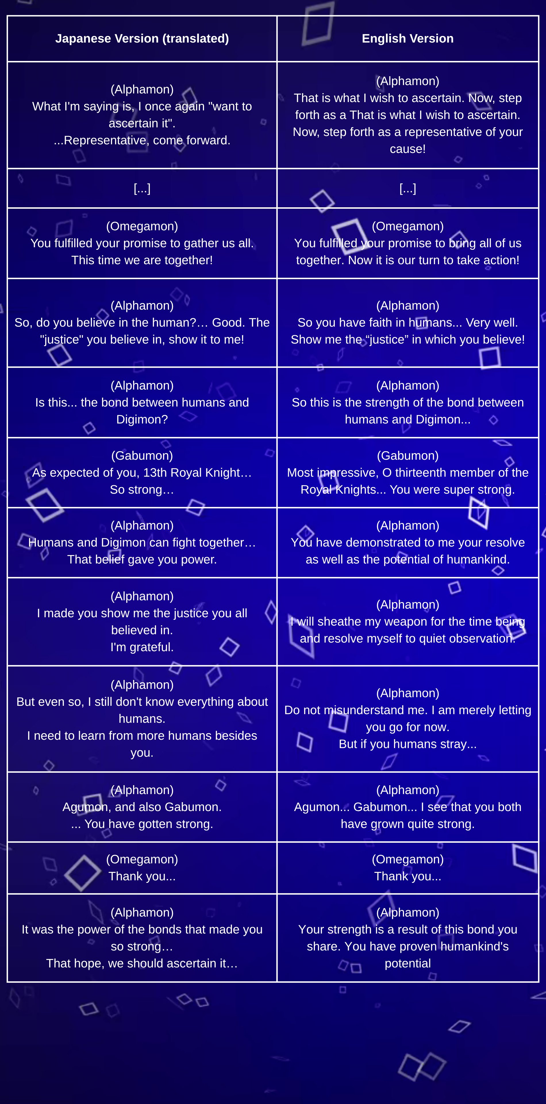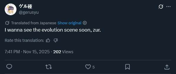 Previous: >>546216113Gamers gathering edition>NEW TO THE DIGIMON FRANCHISE? HERE'S A STARTER GUIDEhttps://imgur.com/a/5uGdx0lGAME NEWS>Time Stranger is out now! The Site below contains the Digimon Roster & Evolutions for TS.https://api.skullbot.fr/digimon/IF LINK BREAKS, REPLACE "WWW" WITH "API">DragonRod's Digital Tamer Reborn 2https://dragonrod342.itch.io/digital-tamers-2>Digital Monster: Net Driverhttps://kuhamaven.itch.io/dm-net-driver>Other recent games:Digimon Story Time Stranger, Digimon Survive, Digimon World Next Order (PC & Switch Port)>Upcoming games:Digimon Alysion>Lost Evolution translation patch finally releasedhttps://pastebin.com/ddh1C8LMANIME NEWS>Digimon Beatbreak has begun airing. OP & ED belowhttps://www.youtube.com/watch?v=wlmn_P8YHr0https://www.youtube.com/watch?v=Je4IjQqlD84 >EPISODE 6https://nyaa.si/view/2040670LIBERATOR NEWS>Comic Chapters & Web Novel Chaptershttps://digimoncard.com/digimon_liberator/en/comic/https://digimoncard.com/digimon_liberator/en/novel/>Official websitehttps://digimoncard.com/digimon_liberator/>Official JP themehttps://www.youtube.com/watch?v=YkmPTtp9D_o [Embed]>Liberator synopsis and character detailshttps://withthewill.net/threads/30615https://digimoncard.com/digimon_liberator/en/character/>Liberator initial announcementhttps://withthewill.net/threads/30489CARD GAME NEWS>Current /tg/ /dcg/ thread>>>/tg/96963414MANGA NEWS>Digimon Dreamers online distribution updatehttps://withthewill.net/threads/30849>EN Reference Bookhttps://digimon.net/reference_en/>Line Buildershttps://digimon-lines.com/buildhttps://furudbat.github.io/digimon-partner-kit/[RESOURCES PASTEBIN [UPDATED WITH CS MOD DETAILS!]https://pastebin.com/LuTfCHDs