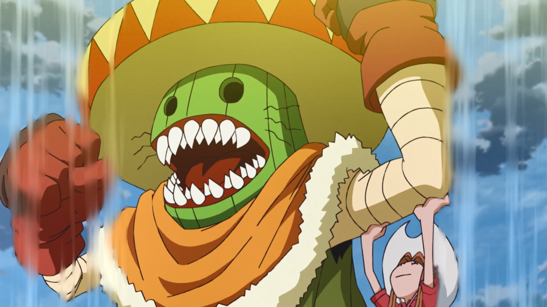 Speaking of, I think Fire is Lamiamon?You can kinda see the frills of the bonnet at the very top right