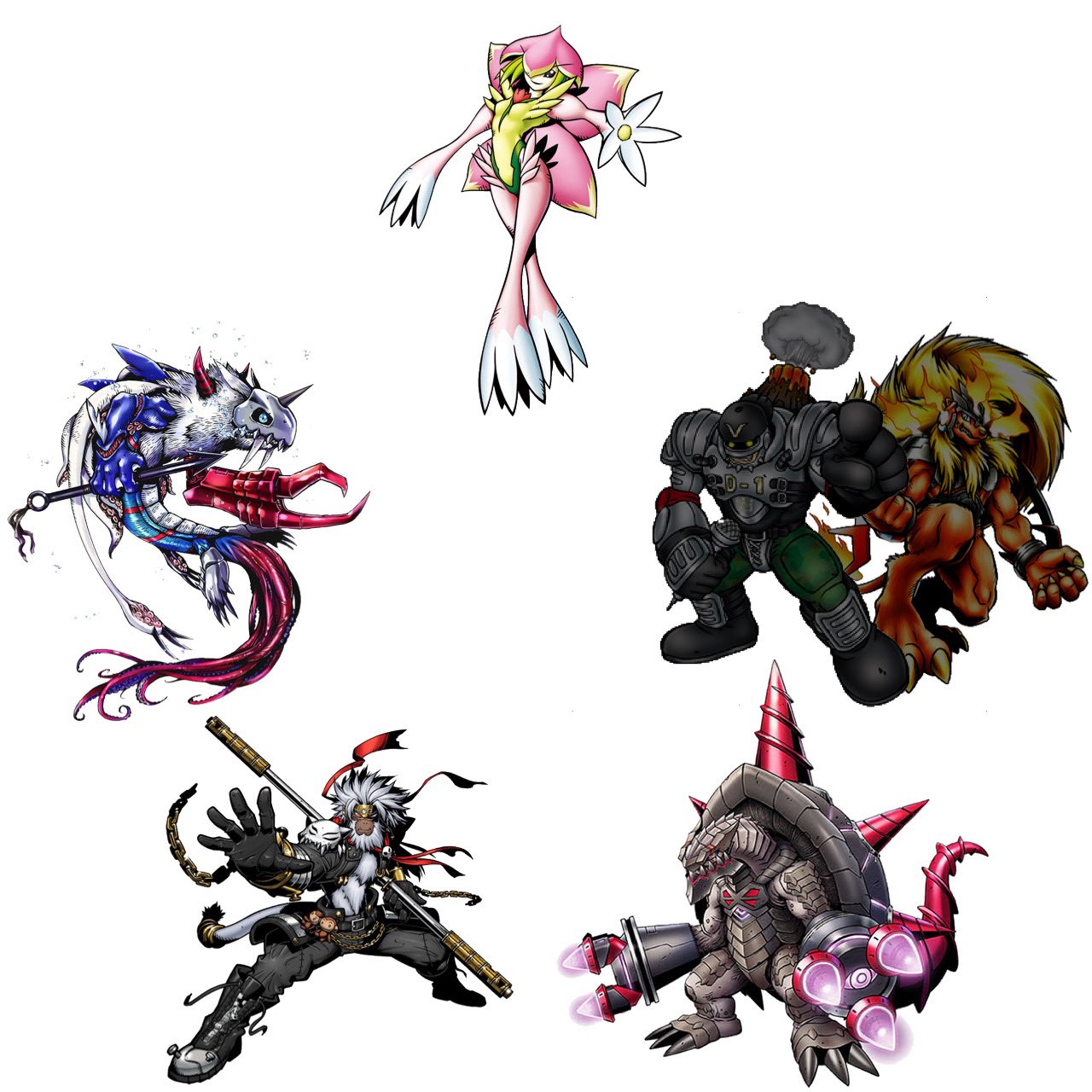 >>546688267Why does red look like fucking Gilgamesh? Also, I'm bad at sillhouitte guessing, who could the left one above Gokuwmon be?
