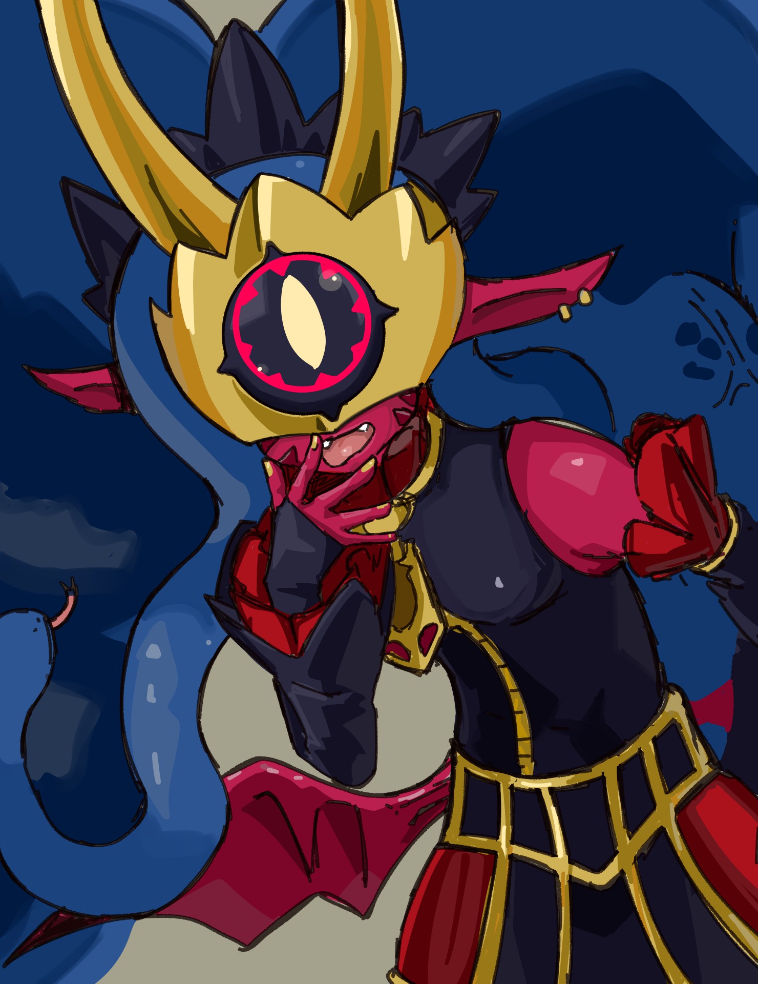 >>546511447>>546511521Cute, strong gremlinI think having the helmet "slightly" open and showing a tiny bit of teeth would've been better than fully open or closed. But that's just me.