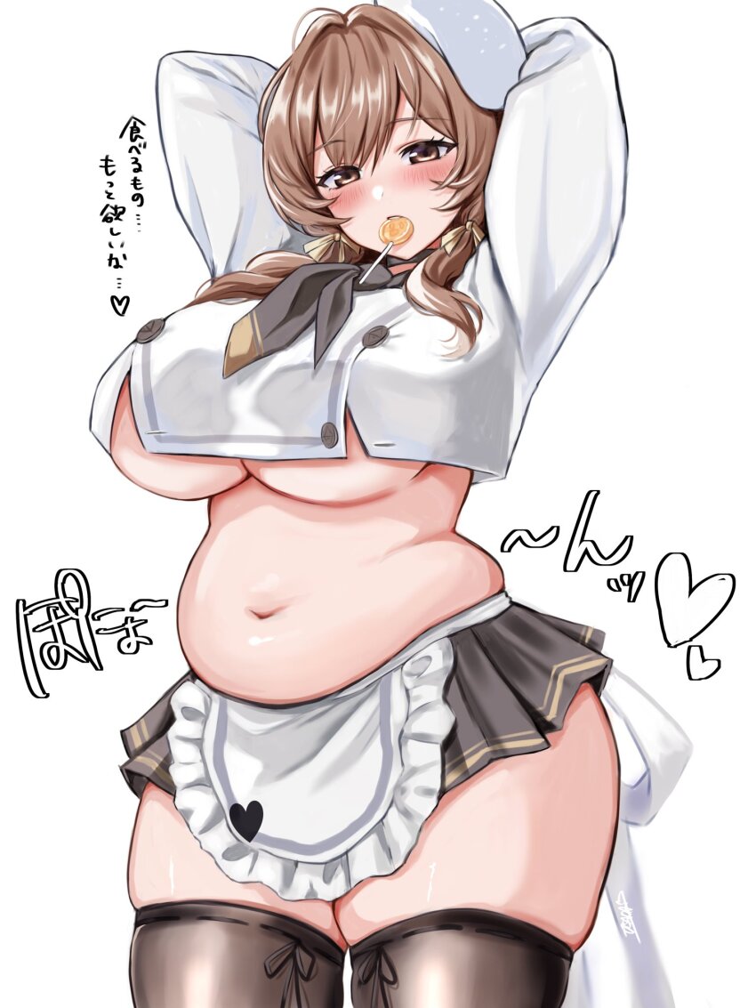 >>546555485Guilty would look nice as a cow. She's already so big that a belly on her wouldn't be out of place.Noir should get more pudge. She's got so many lines of dialogue about putting on weight that it's strange to see her waist as shapely as it is.Tia should fully commit to it. They seemed to be afraid to truly show it with her belly hanging out in her burst animation, and her apron costume has a little bit of a muffin top peeking out, so maybe there's hope for her in a future alt.Soda would balance out her top heavy form with a bit of a belly.Mary carries herself as if she was a fertility goddess, so she should look more like one.Neve has a tummy and I better not see slimmed down in a future alt, a hibernating bear such as her should be packing on more.Clay is distinctly softer and not as toned as Bay. It would fit her clumsy nature to have some belly flab.Rapunzel seems like the type to put on weight as she gets older and more stressed, perhaps her resurrected form will have a visible tummy pouch like her past alt's body suggested.Exia could learn from Maiden and put on some weight after spending so long locked up in her room.Quency should have trouble fitting into her suit for reasons other than her huge boobs, the only crime committed around her were the devs slimming her down from her base design.Anchor has a really cute belly in her maid alt, I feel greedy asking for it but if there were a little more that stands out I would be happy.Viper looks like a slampig in her summer skin and should keep that kind of chub going forward, it really suits her as a character.Marian should put on some more weight to fill out her wide hips, it's only fitting if she's going to be the queen.Anis should be the one to really let loose and get more pudge instead of less.