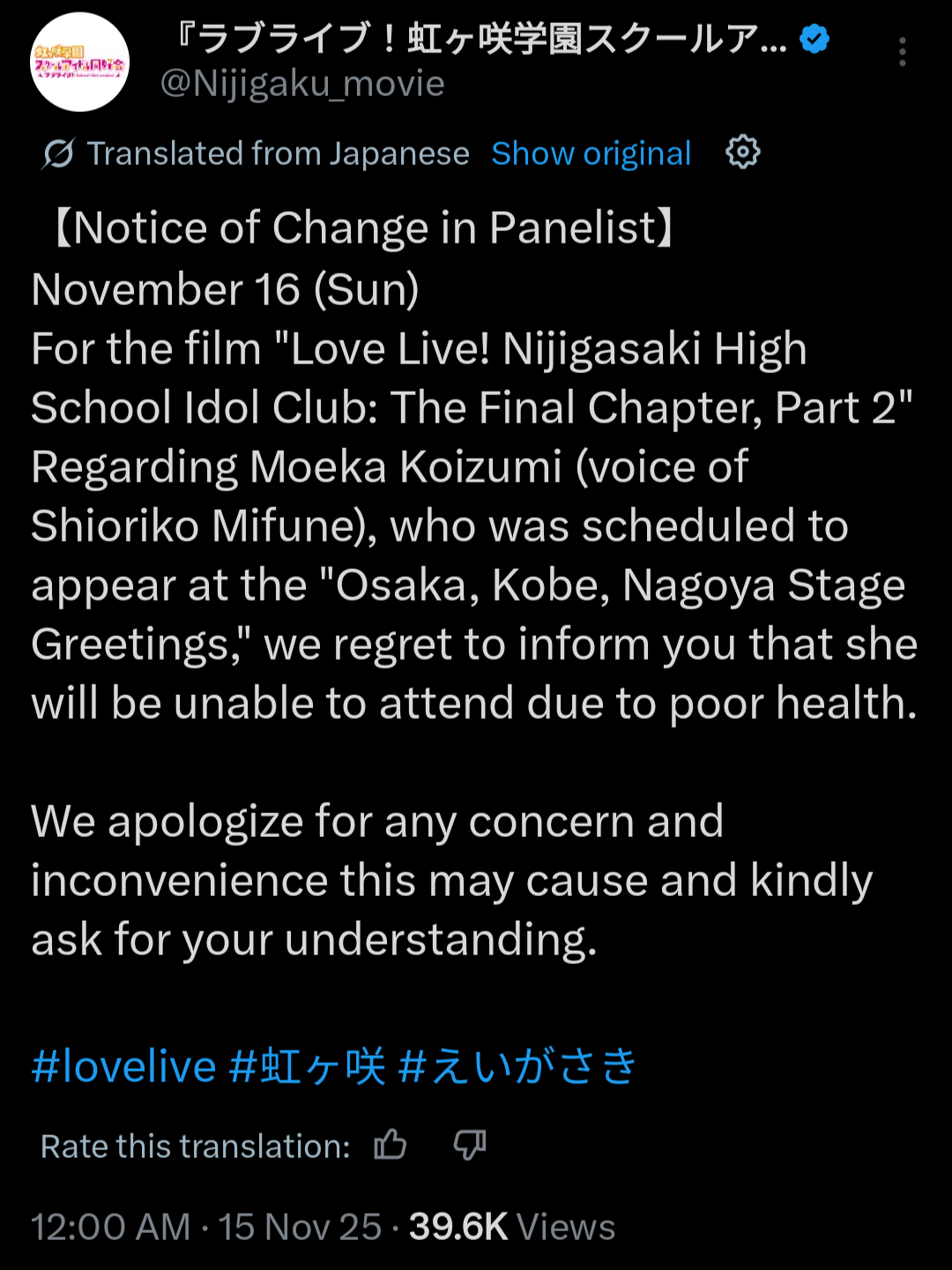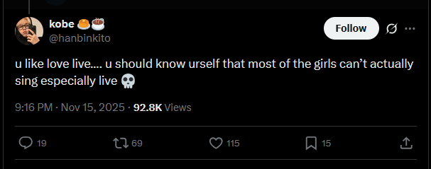 I bet when Hasu's movie does better than Niji's, the cope will be that you need to count all three together for the latter.
