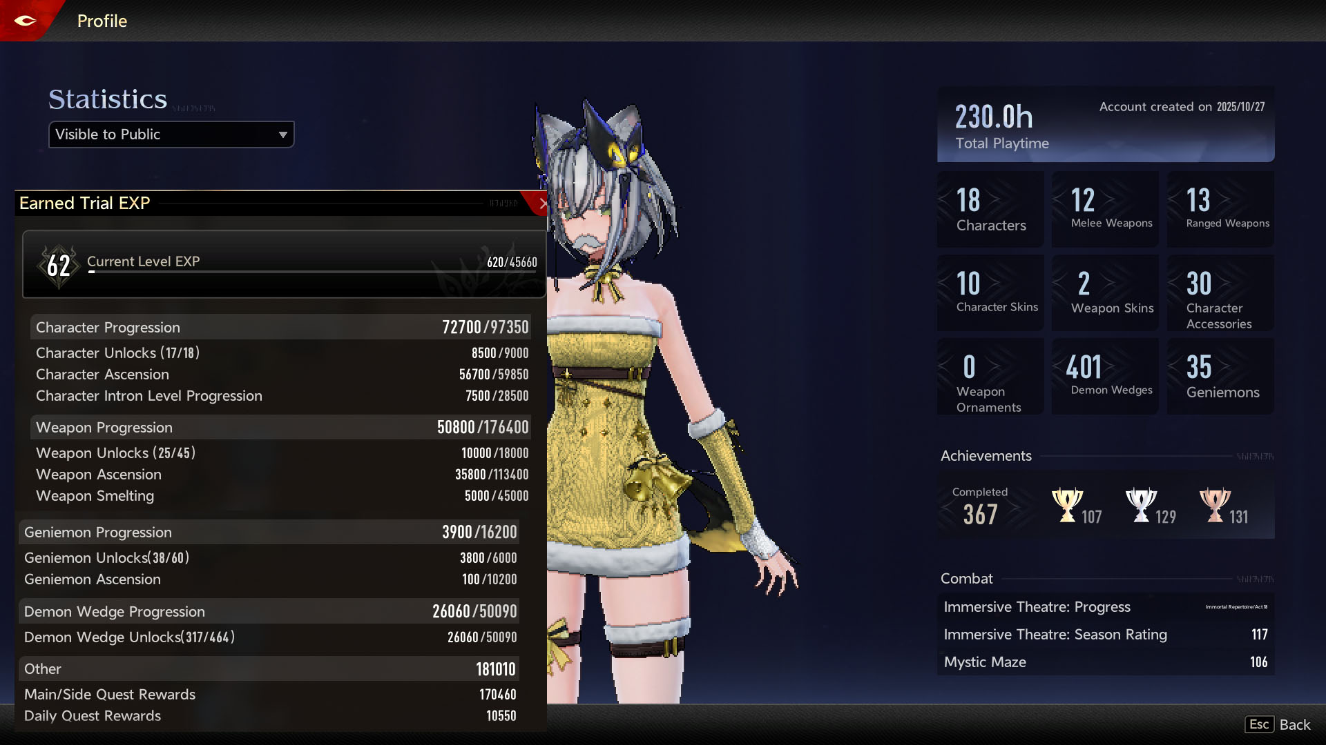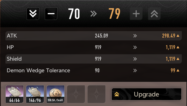 >>546566136On that note:Green: 500Blue: 2000Purple: 8000Gold: 2000070 to 80 is (if I didn't fuck it up) 1,009,000 exp. Gold cost is 0.2 per 1 exp. Weapons have the same book values and coin cost but take 387350 to go from 70 to 80.I have no idea why the game obfuscates everything about character and weapon exp.