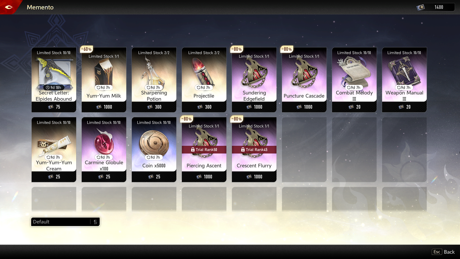 >>546574952Wedges are account exp and one time purchases.Yum yum milk is exclusive to theater and the only one in existence right now, only way to ascend battle pass bought geniemon until next battle pass.The scythe is currently limited to the theater for 9 days, after it goes somewhere into the weekly bosses attempt so you lose attempts later (between 2 or 3 attempts from weekly to get the weapon and all its pieces)Do not buy carmine or coins.Yum yum cream is best farmed from fishing, you will run out of geniemons to ascend before you exhaust fishing store of it.Sharpening and projectile are currently noobie traps, you can't afford both and clean shop of the limited non farmable stuff.