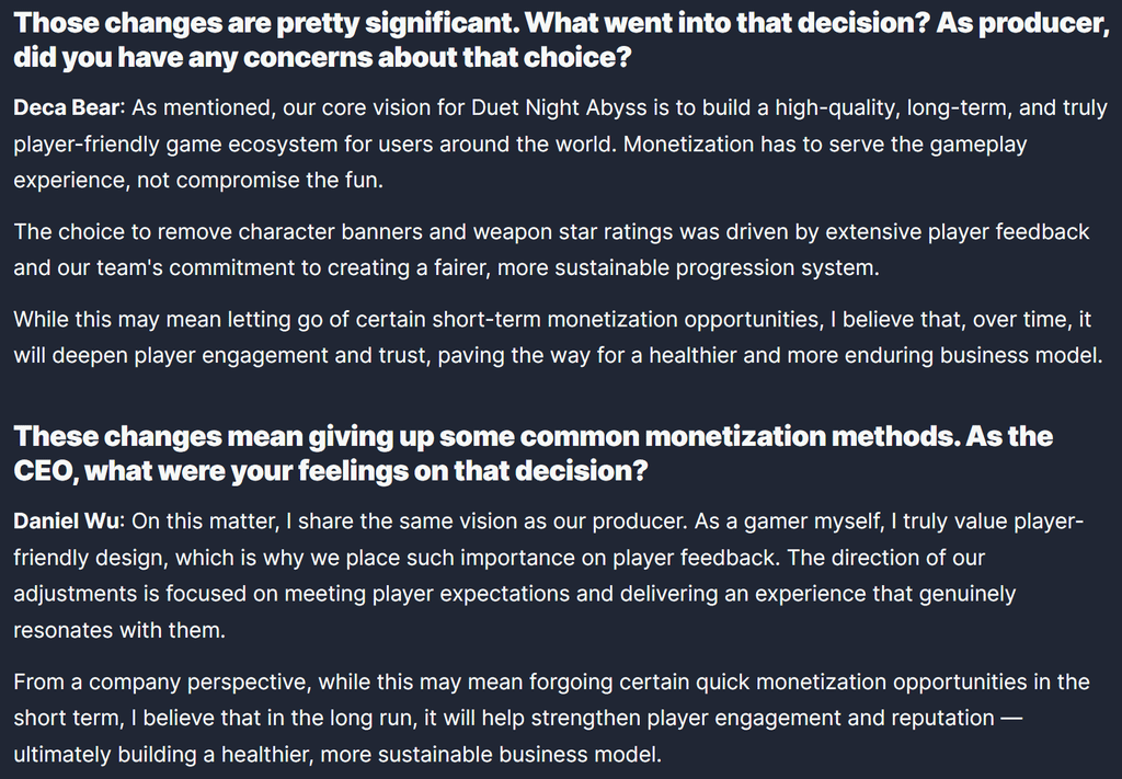 >>546582061This is a excerpt from an interview. They're in it for the long haul it seems. Unless the game is failing catastrophically, it should be fine.