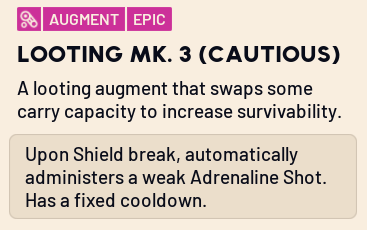 as if this already wasn't dogshit enough, the adrenaline shot doesn't actually work. i just had my shields broken at low stamina and i didn't get shit. i was lucky i could slowly walk to cover