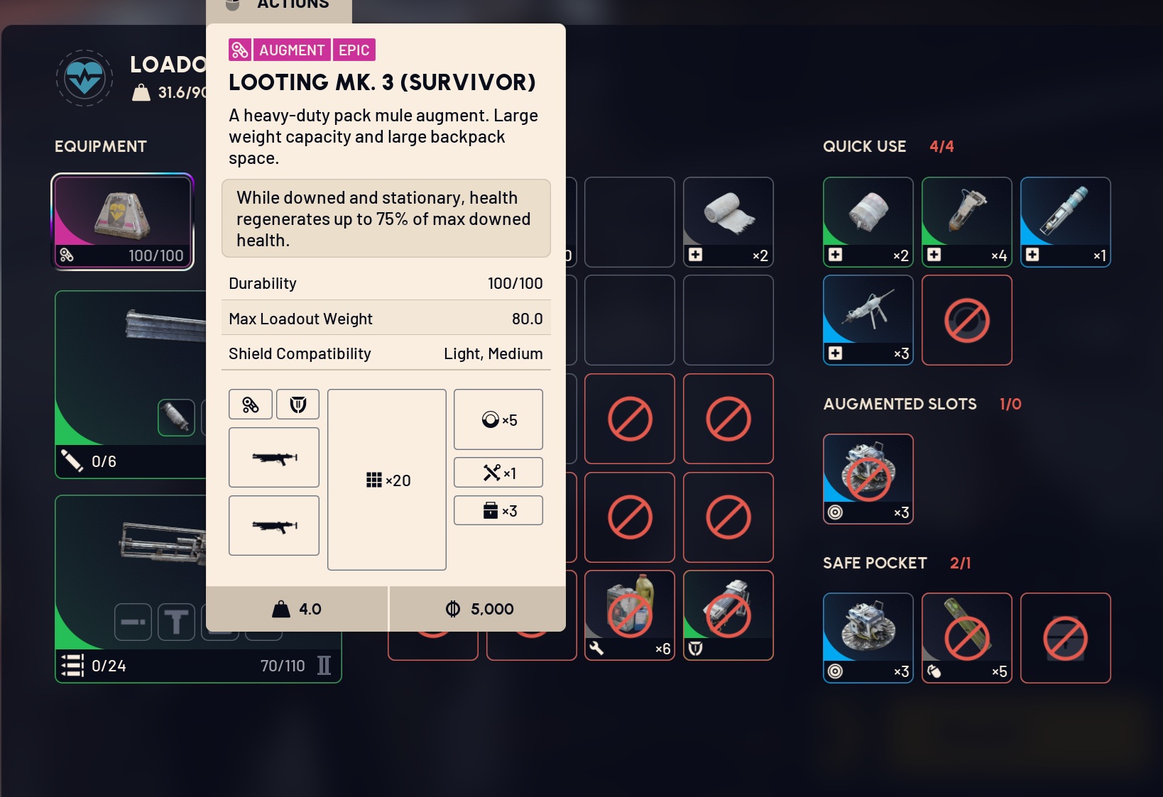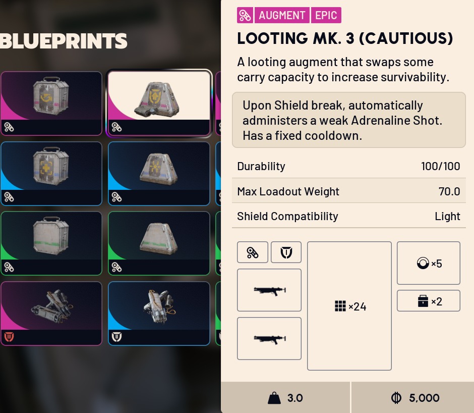 >>546583346Yeah that one is garbage I only use this one. I have like 20 of them in my stash and take em to every raid. Saves my ass with increased crawl speed and never being able to die from bleeding out. I'd be bummed if I had crappy augments I got really lucky on that blueprint.