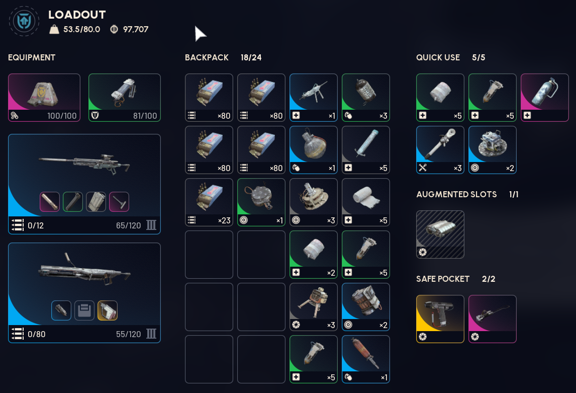 pro tip for 280/280 gods: split your ammo on your raider so that bought/crafted ammo fills your pockets without you needing to make as much room in the stash