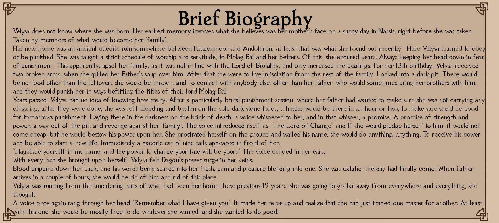 >>546618683Good thing there's a zoom function.But, yeah. I could have cut some parts out, but when I was done writing it, it was late and I couldn't be arsed doing it. I get parts with moment to moment narrative shouldn't really be part of 'brief biography'. It is what it is now.