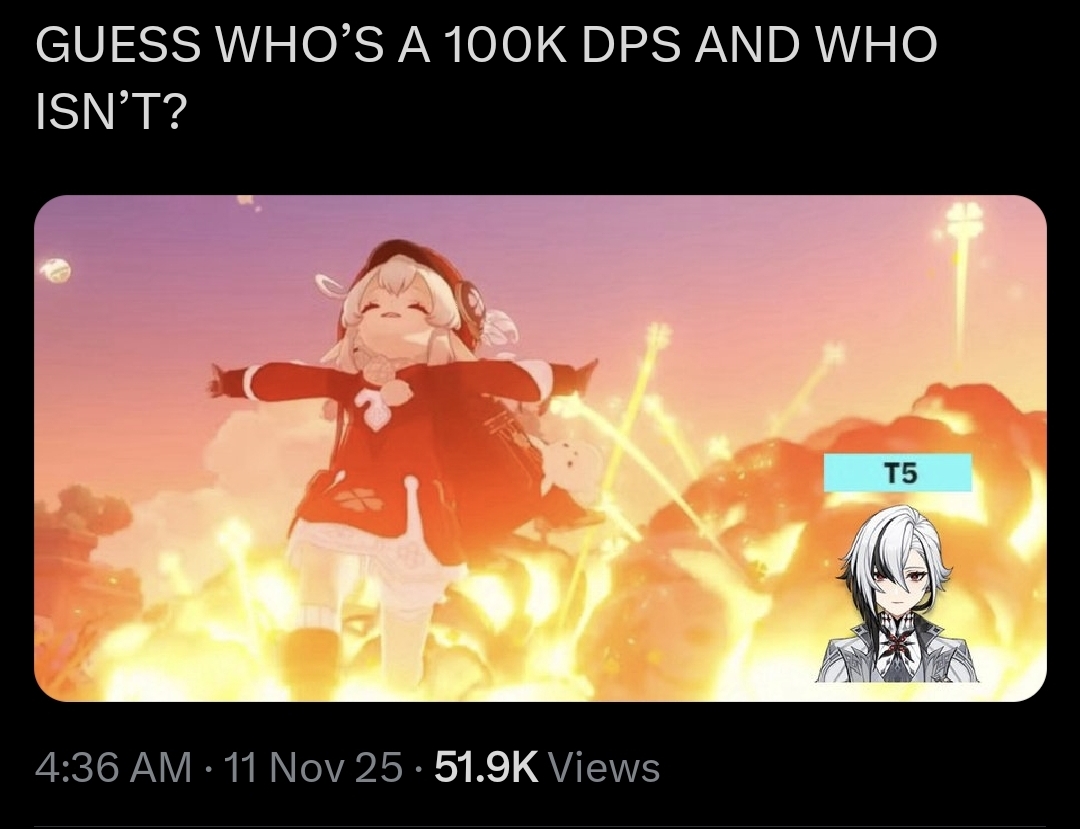 Previous: >>546634712 >Current character banner: Arlecchino, Zhongli, Lan Yan, Yun Jin, Rosaria>Current weapon banner: Crimson Moon's Semblance (Polearm), Vortex Vanquisher (Polearm)https://www.hoyolab.com/article/42197501 >Daily check-in rewards (permanent)https://webstatic-sea.mihoyo.com/ys/event/signin-sea/index.html?act_id=e202102251931481&lang=en-us >Redeemable Codes with Primogems (all regions): https://genshin.mihoyo.com/en/giftGENSHINGIFT0FQBAJNXCUFUEPIC2025R4SCAU7CR1G9 >Useful Links (Wiki, Simulators, Maps, Character Builds, /gig/ friendlist, Third-Party Tools, etc.)https://rentry.org/giglinks /gig/ OP pastebin (use this if making new thread):https://pastebin.com/ca0zseQ9