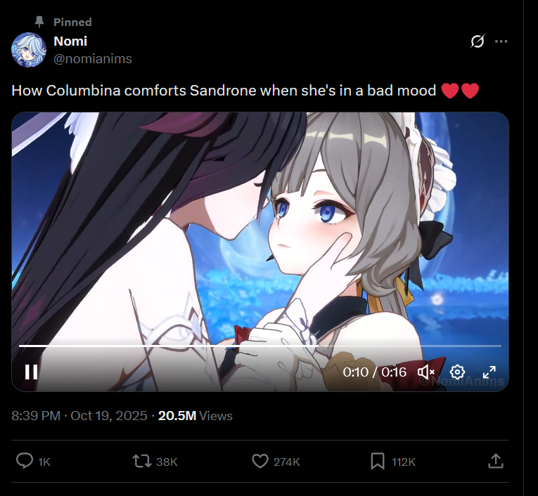 >>546667845Hey I saw this earlierhttps://www.reddit.com/r/Columbina_Mains/comments/1nr38sy/aether_proposes_to_columbina/