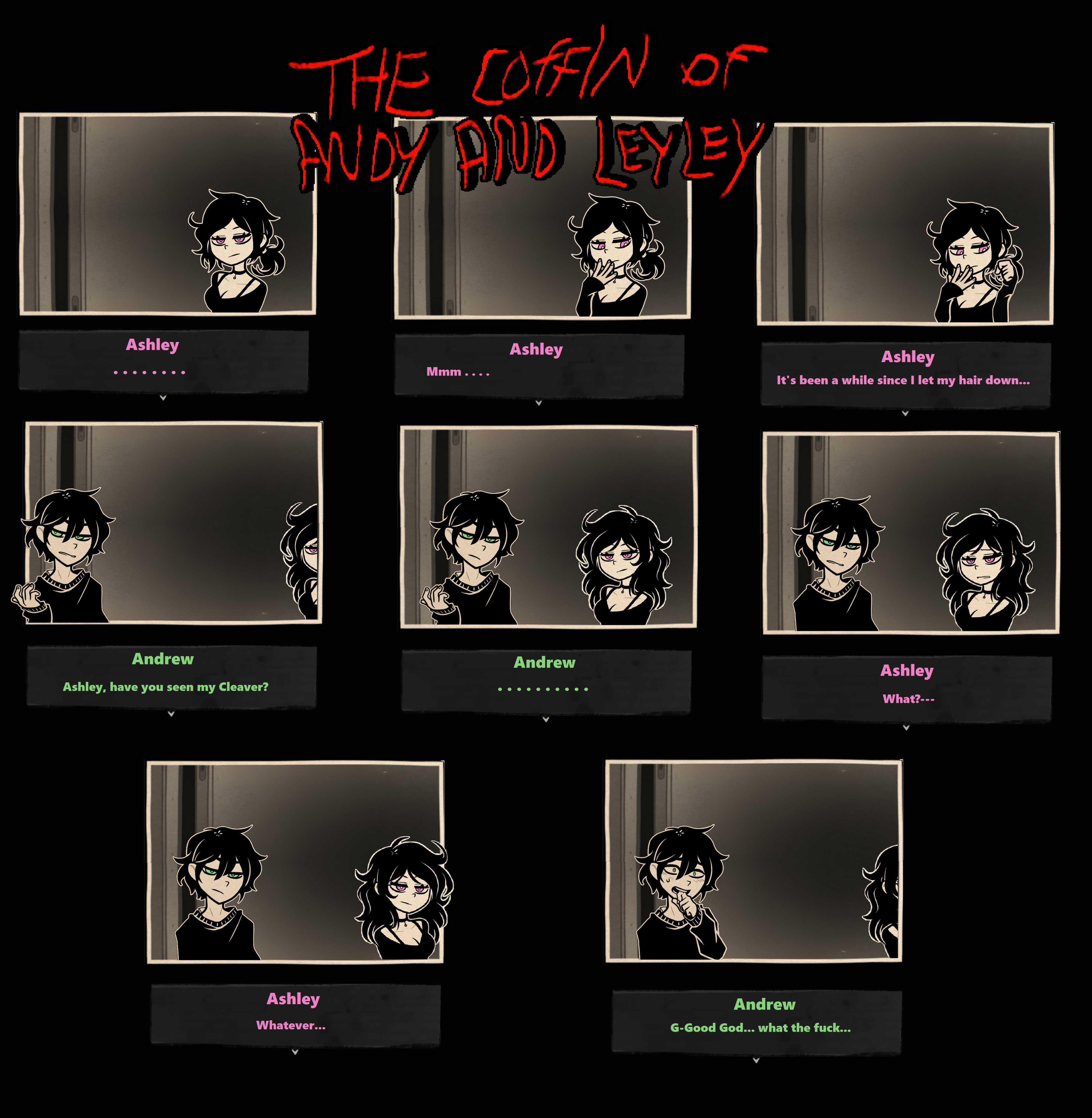 Store link:https://store.steampowered.com/app/2378900/The_Coffin_of_Andy_and_Leyley/# Guides (Major spoilers; avoid until having played through the game once):>Routes & Subrouteshttps://steamcommunity.com/sharedfiles/filedetails/?id=3050501797>Achievementshttps://steamcommunity.com/sharedfiles/filedetails/?id=3050231198>Stars & Visionshttps://steamcommunity.com/sharedfiles/filedetails/?id=3459534675>Complete Episode 2 Walkthroughhttps://steamcommunity.com/sharedfiles/filedetails/?id=3052417644>Episode 3 Endings Guidehttps://steamcommunity.com/sharedfiles/filedetails/?id=3148380245# News:>Episode 3A: Decay has been released!https://store.steampowered.com/news/app/2378900?emclan=103582791473416093&emgid=523086940514289223>Announcement schedule rescheduled; no more monthly teasers due to spoilers. Future announcements will happen only as needed.https://store.steampowered.com/news/app/2378900/view/523092648628585985# Nemlei's previous games:https://mega.nz/file/FSFXURYI#FhEp5w4qMv4w0A0mMfQ4YqLD5TJuve014_-eTNdIbSIPrevious thread: >>546154696