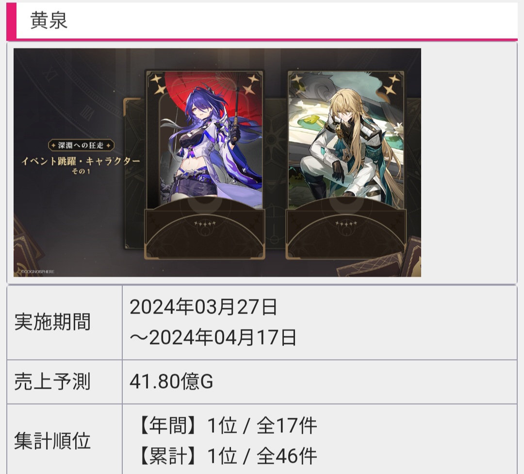 >>546690209>>546691514Chrysos flops? Jobbed to Firefly without any sales deals or Fate collab to boost the sales.