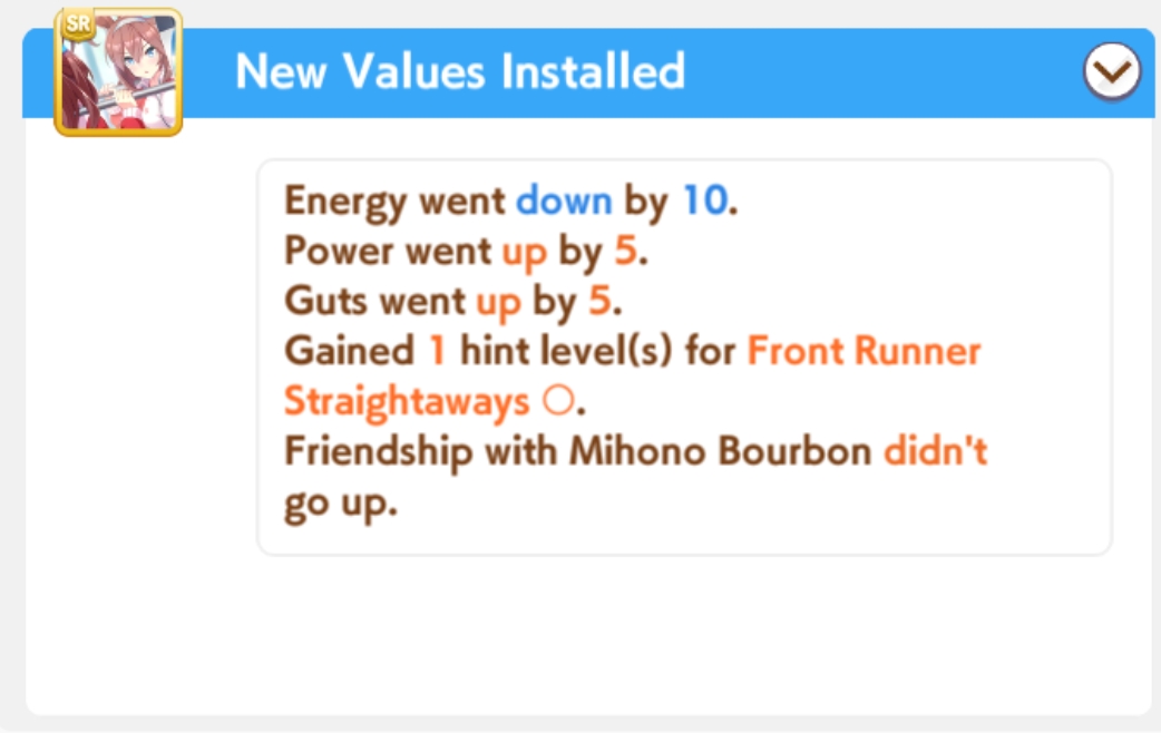 >>546723571It's actually doing wonders for making me memorize which support cards have which skills for which distance, and which of those skills are actually useful. I'm pretty sure I could compose a support deck straight off the dome for any distance at this point.