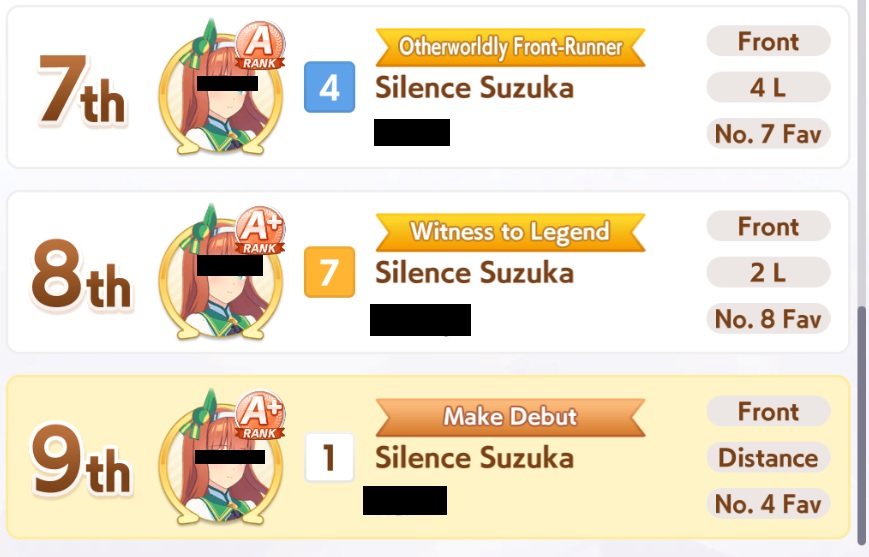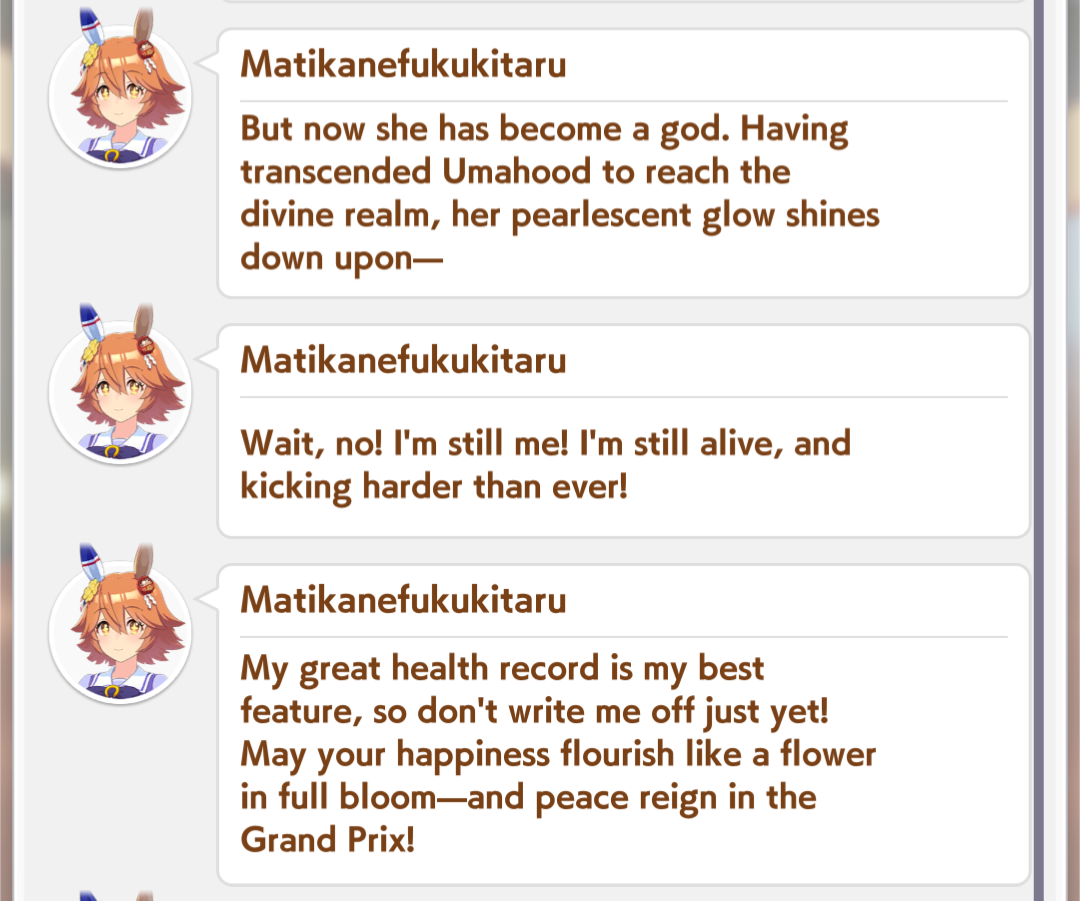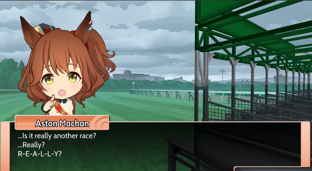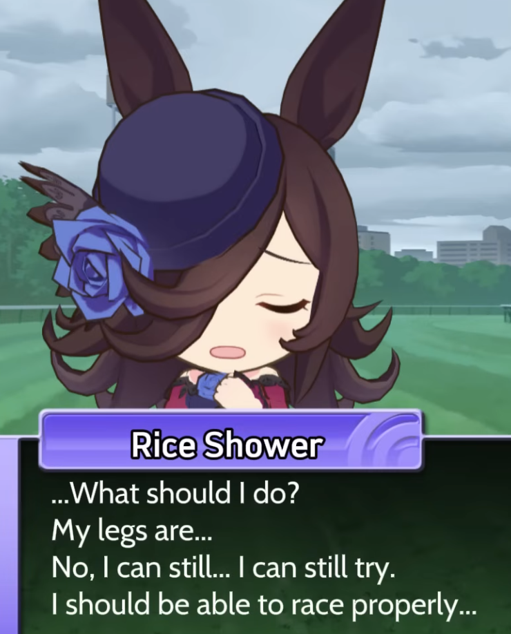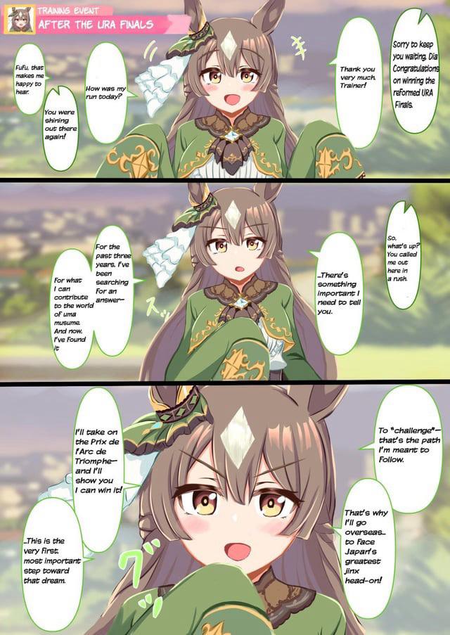 >>546710680desu the autism of irl horse accuracy sometimes hurts uma musumelike we can NEVER EVER see rudoloph or maruzensky ever do a fucking race in any game even or anime, that's fucking dumbthe entire point of uma musume is this happy magical land where the horses don't randomly die of exploding knees and rice shower/suzuka didn't tragically die, so why do they all have to retire after 3 years in-universe?
